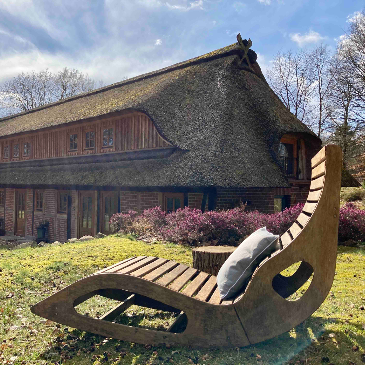 Unter dem Reet fühlt man sich behütet und geschützt. Der Hof und die vollständig mit Reet bedeckten Dächer der insgesamt sechs Gebäude sind etwas ganz Besonderes und einzigartig in der Heide. Die malerische Umgebung tut dazu ihr Übriges: Sie verführt zur Muße und Tagträumen oder einer in sich versunkenen Runde Yoga. Verträumte Fahrradwege laden ein zur Entdeckungstour, der Heidekaffeeröster, eine Cranberryfarm oder der HeideGin versprechen spannende wie genussvolle Ausflüge.