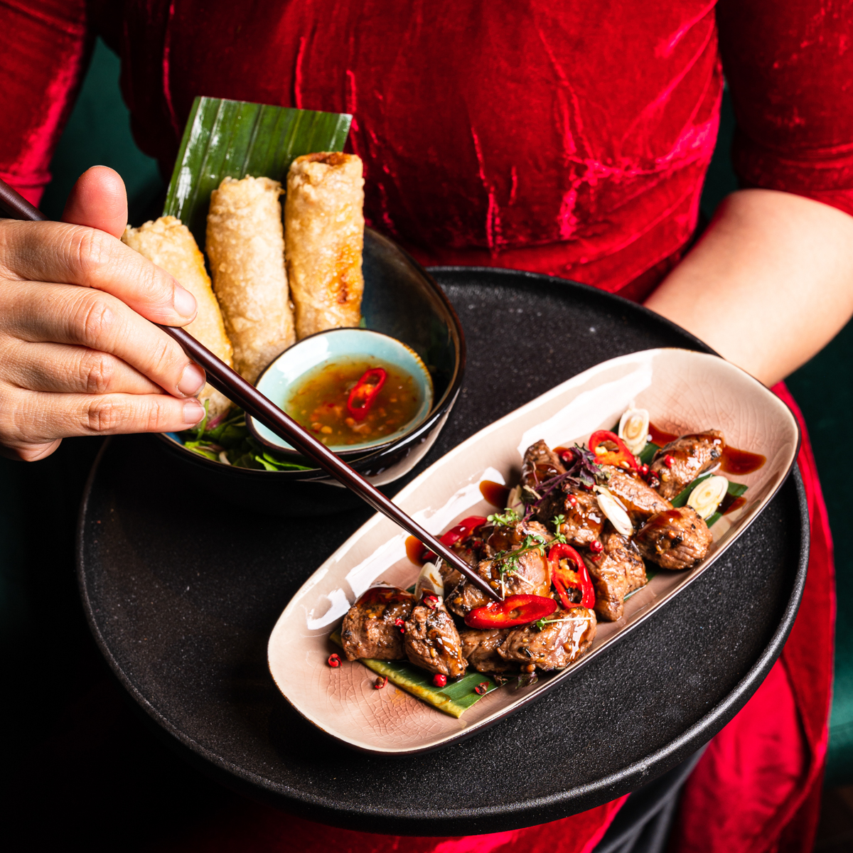 Fusion-Küche hat sich das Madame Mai auf die Fahne geschrieben, da traditionelle asiatische Speisen mit europäischen Kochtechniken wie slow cooking, Dampfgarung oder Sous Vide zubereitet werden. Alle angebotenen Gerichte gibt es auch in einer veganen Variante. Die Tapas-Karte des Madame Mai bietet Leckereien aus allen Ecken Asiens: es gibt Sushi, Bun Bao Burger, wie man sie aus Vietnam kennt, oder Dumplings aus China.