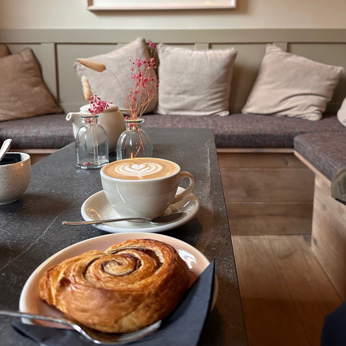 Nur wenige Quadratmeter klein, aber wirklich zauberhaft, wirkt das Marmalade wie ein liebevoll gehütetes Geheimnis. Außen dezent, innen extrem charmant. Helle Holzflächen treffen auf pudrige Pastelltöne, filigrane Vintage-Möbel auf handverlesene Accessoires. Jeder Winkel erzählt von Stilbewusstsein – skandinavisch inspiriert, doch stets mit norddeutscher Gelassenheit.