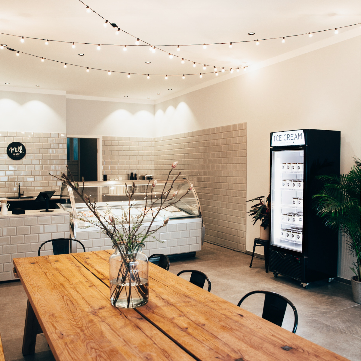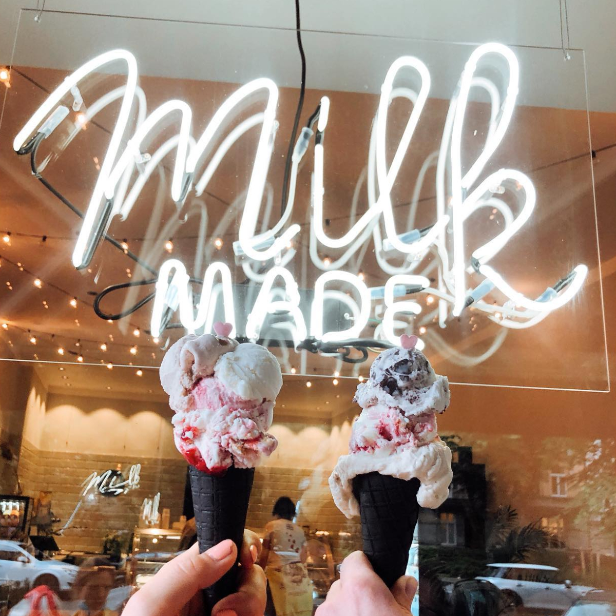 Milk Made Ice Cream findet man der Eppendorfer Landstraße und in der Friedensallee. Die Ladenlokale wirken so frisch und einladend wie das Eis selbst. Wir freuen uns schon auf den Frühling, die nächsten Besuche bei Milk Made Ice Cream und ein handgemachtes, kühles, erfrischendes Eis. Oder wir lassen uns einfach eine Portion bis zur eigenen Hollywoodschaukel liefern.