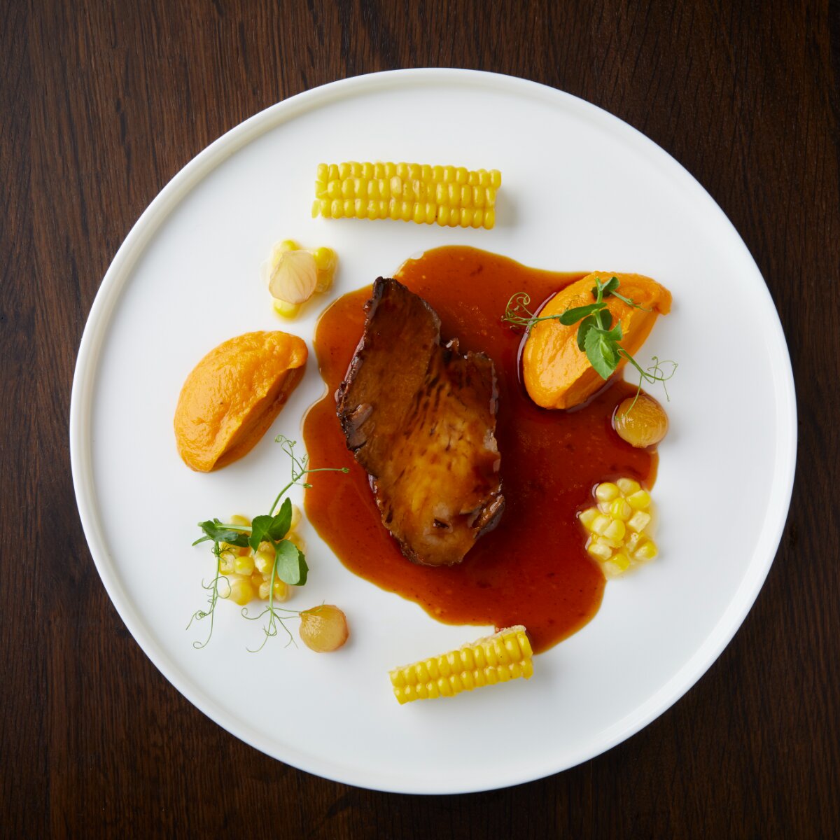Wir starten maritim in Form von gebeizter Fjord-Forelle mit Kopfsalat, Apfel-Chutney und marinierten Gurken. Christian Planko versteht es, Geschmacksnuancen perfekt aufeinander abzustimmen. Klassischen Gerichten gibt er, wie hier mit dem Apfel-Chutney, einen besonderen Twist. Das Gericht überzeugt nicht nur optisch, sondern schmeckt auch noch hervorragend!