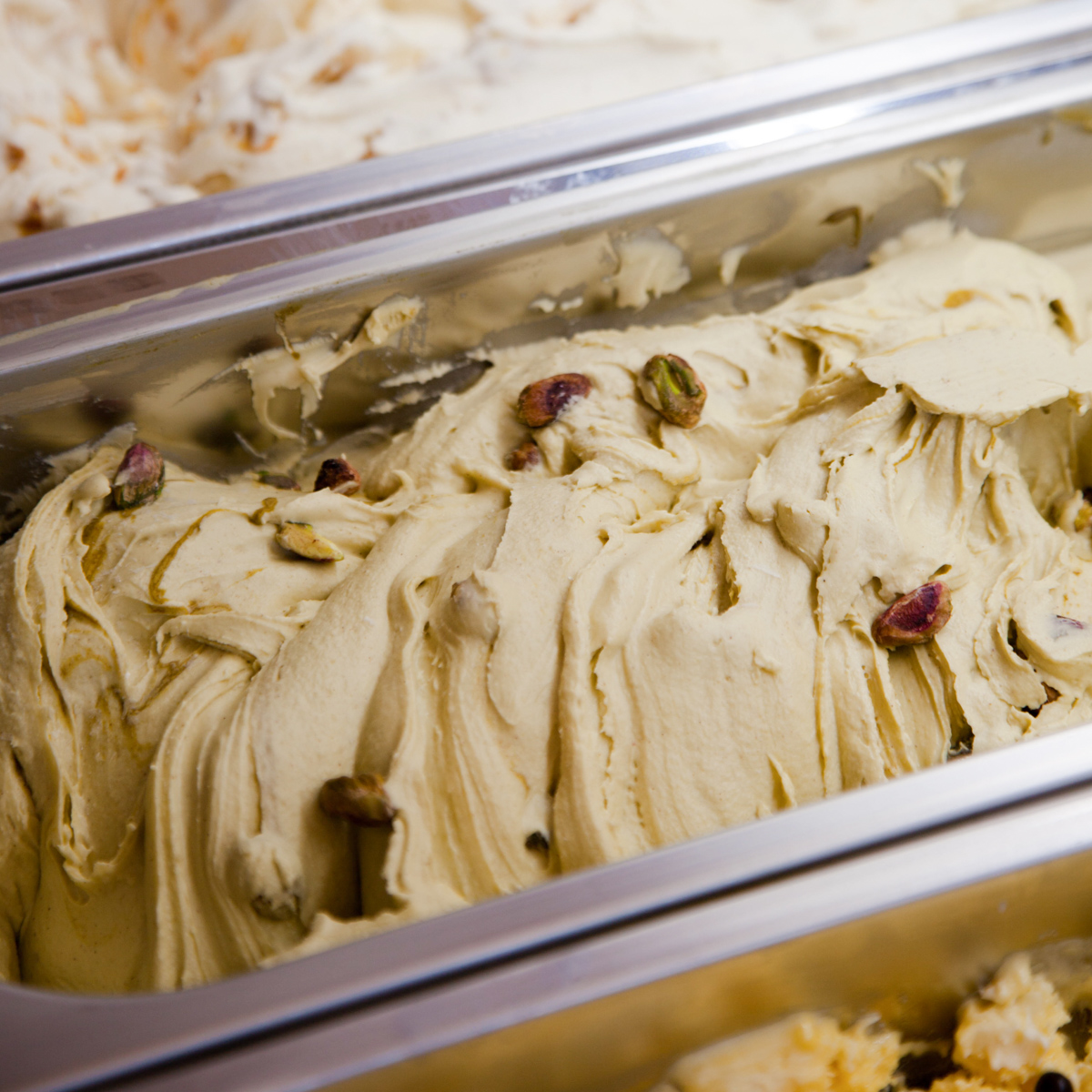 Nichts da Kakaopulver! Und auch keinerlei Emulgatoren oder Fertig-Mischungen. Den Beweis liefert der Blick durch ein großes Fenster zum Nebenraum. Dort kann man Marie Oehler dabei beobachten, wie sie aus frischen Zutaten feinstes Speiseeis zusammenrührt. Grundzutaten wie Milch und Sahne kommen selbstverständlich aus dem Hamburger Umland.