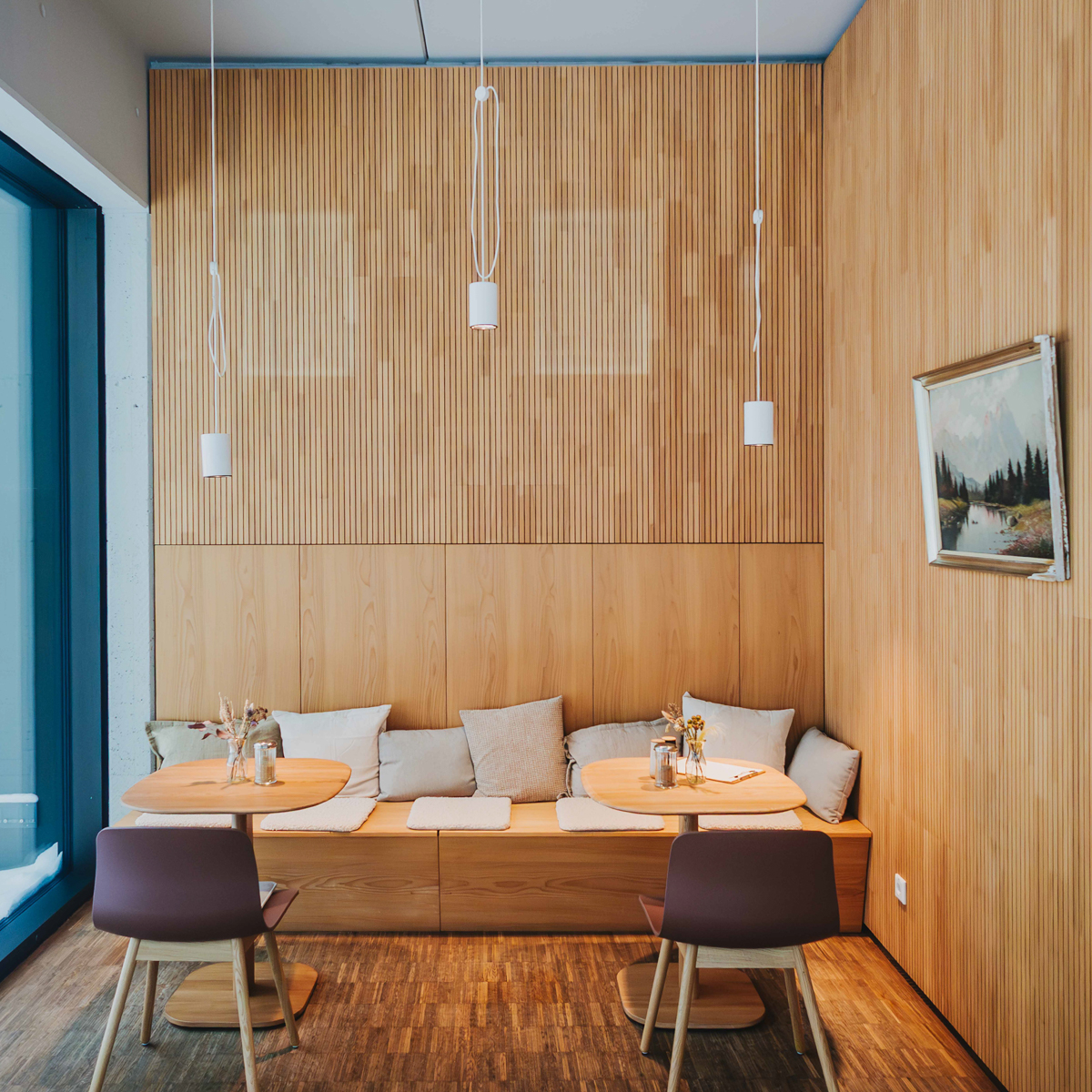 Nach einer Schaffenspause kehrte Marc Müller zurück an den Herd und entwickelte das Konzept für das Pastorale, dessen besondere Lage neben einer Kirche natürlich das Restaurant prägt. Mit seiner skandinavisch inspirierten Einrichtung wirkt es mehr wie ein modernes Wohnzimmer. Durch die großen Fenster fällt viel Licht in den Raum, im Sommer erweitert eine Terrasse im Grünen den kleinen Gastraum.