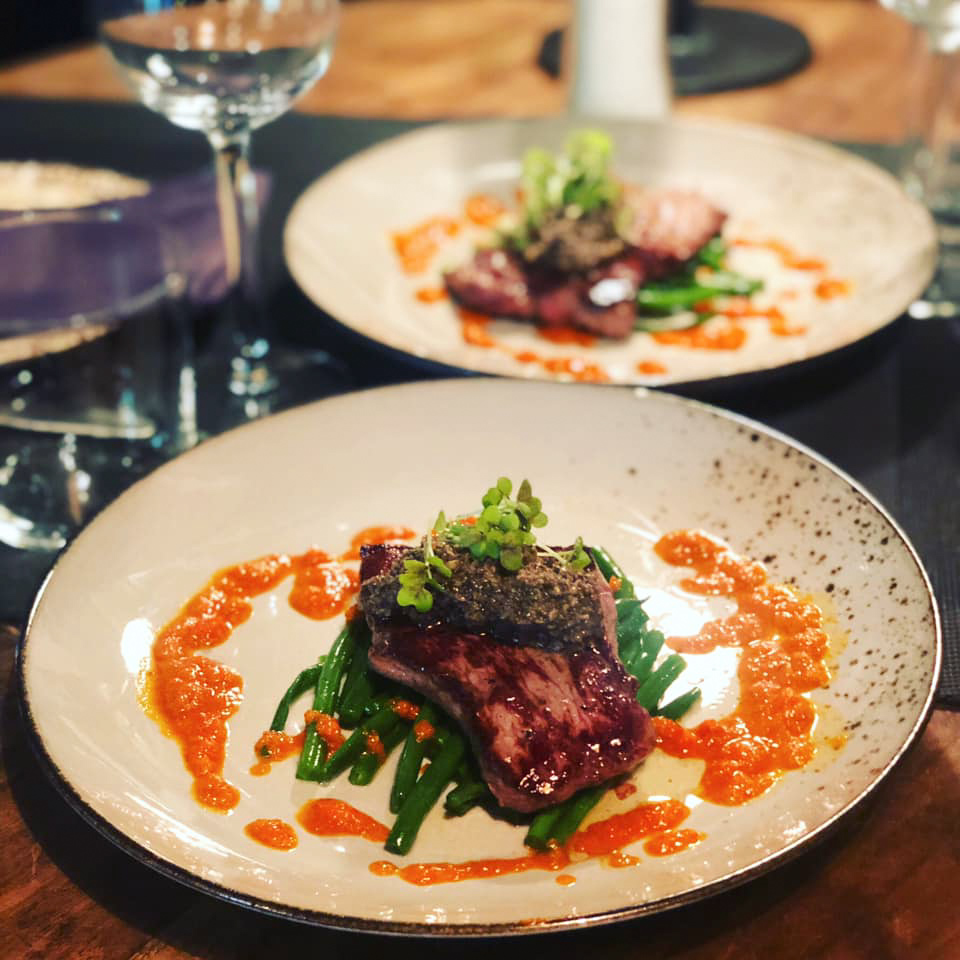 Klassisch auch das Rindertartar mit Wachtelei, das am Tisch angemacht wird. Der Pulpo ist auf den Punkt gegart und insbesondere der Linsensalat mit Burrata hat es uns angetan, da die Linsen mit ihrem perfekten Biss einen tollen Kontrast zur zart-cremigen Burrata bilden. Der Ziegenkäse mit Honig, Feige und Portwein geht zwar beinah schon als Dessert durch, doch die Küche im Restaurant Patio ist angenehm leicht, sodass noch etwas Platz für ein richtiges Dessert bleibt.