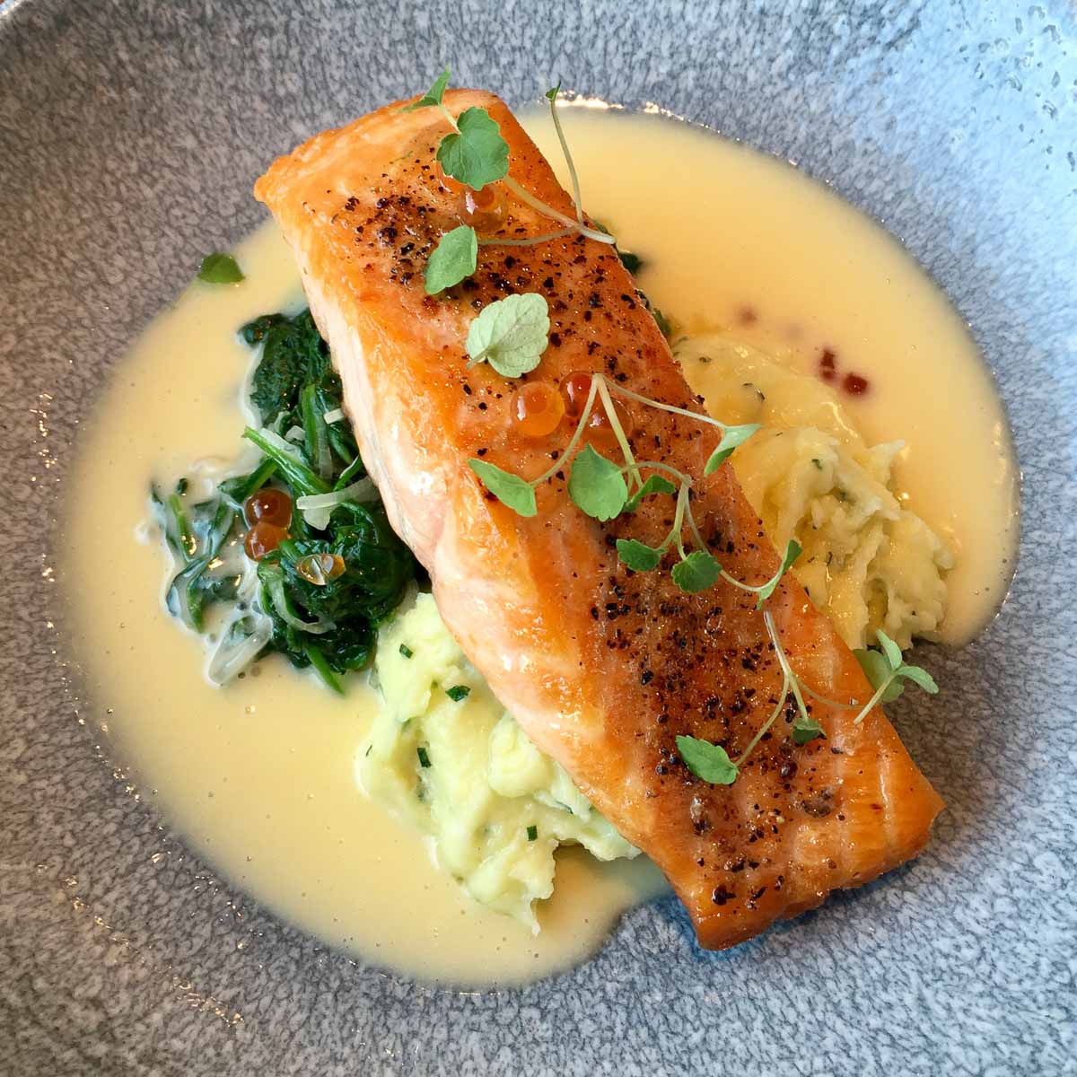 Dazu wählen wir australischen Sauvignon Blanc und Vinho Verde aus Portugal – ohne einen Blick in die Weinkarte zu werfen. Der Service ist so aufmerksam und stets bestrebt, unsere Wünsche zu erfüllen, noch bevor wir sie selbst bemerken, dass wir uns entspannt zurücklehnen und ganz auf die köstlichen Aromen konzentrieren können.