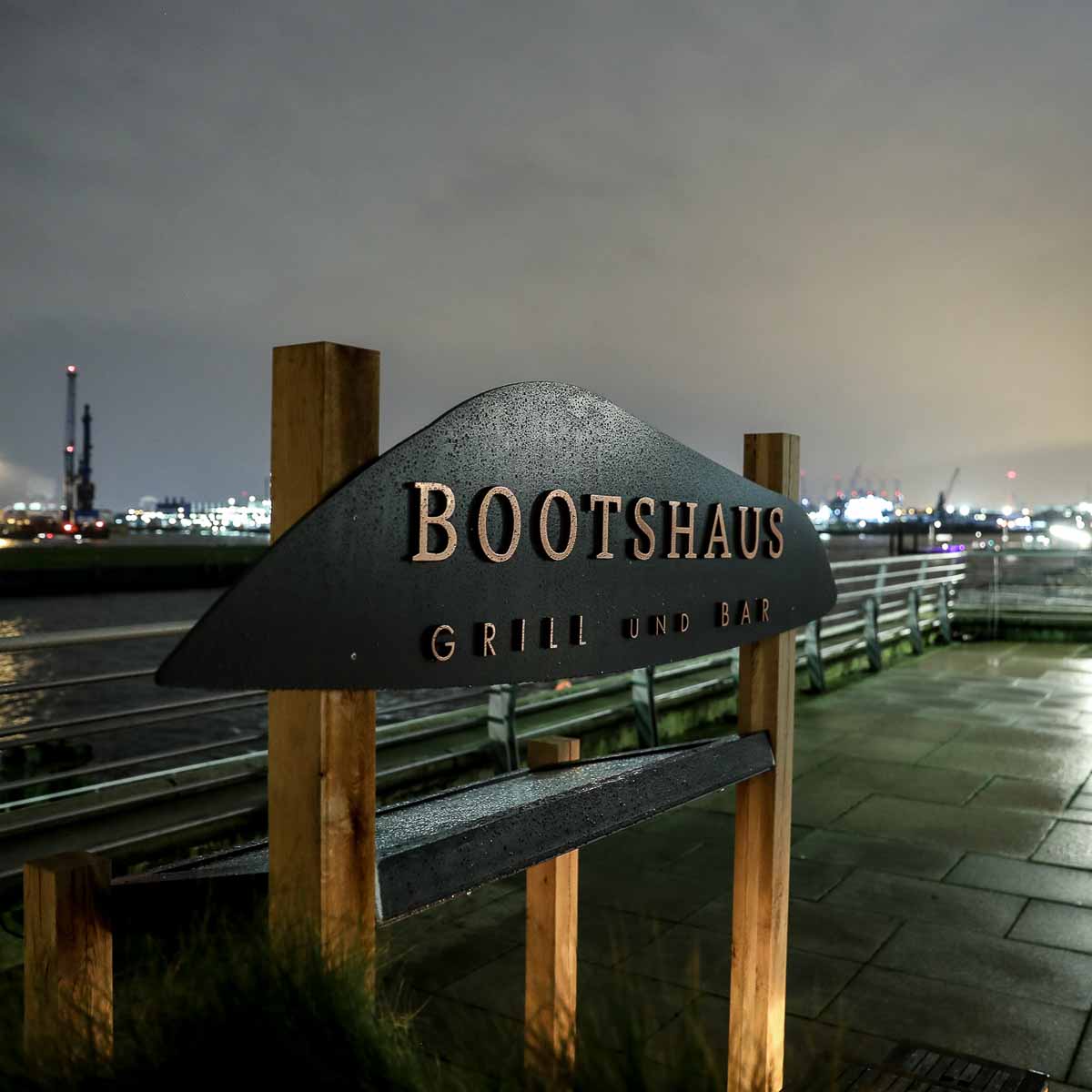 Das Bootshaus Grill & Bar liegt oberhalb des Grasbrookhafens, nur ein paar Schritte von den Marco-Polo-Terrassen entfernt. Von unserem Tisch aus haben wir zwar keinen direkten Elbblick, doch die Begrüßung ist so überaus herzlich und die Einrichtung so einladend und geschmackvoll, dass der Ausblick sofort vollkommen unwichtig wird.