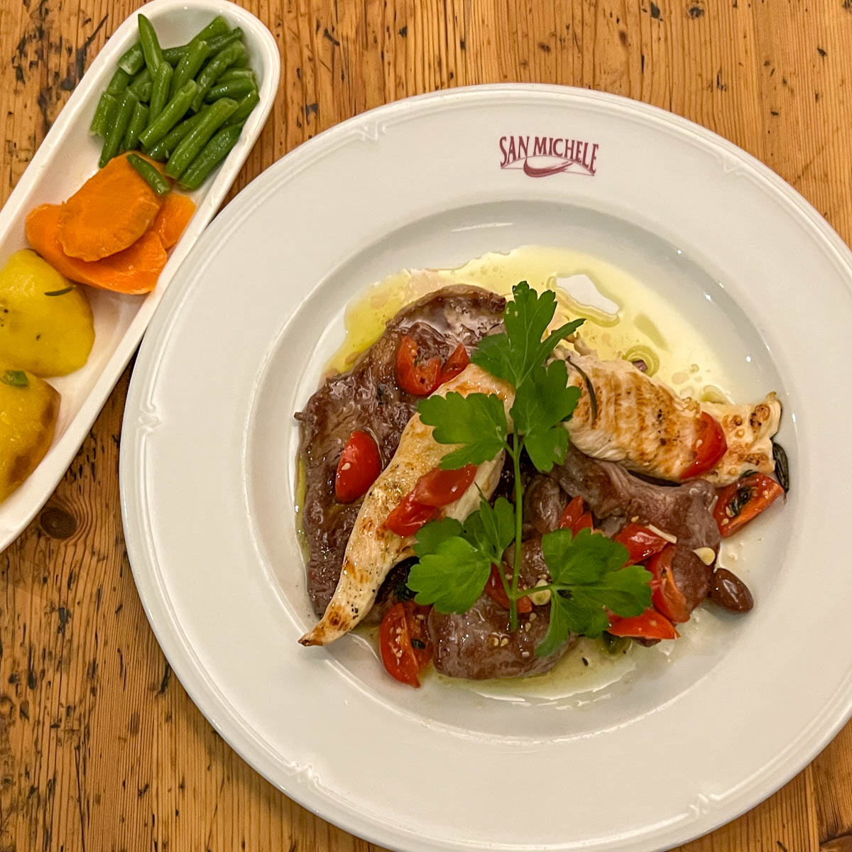 Generell ist das San Michele nicht nur Restaurant, sondern auch Feinkostladen. Öl, Fischkonserven, Saucen und viele weitere italienische Spezialitäten laden zum Mitnehmen ein. Ebenfalls gibt es die Speisen to Go, doch wir genießen selbstverständlich vor Ort. Es gibt italienisches Allerlei, von leckeren Antipasti über variantenreiche Pasta, knusprige Pizza, bis hin zu feinem Fleisch. Und natürlich Fischgerichte.