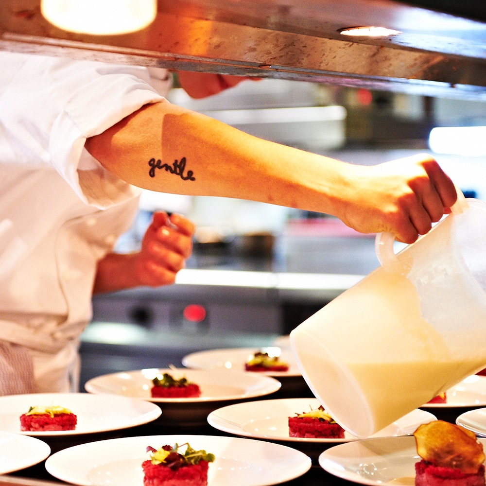 Gemeinsam mit ihrem in Kärnten geborenen Mann Alexander betreibt sie seit 2009 das Restaurant – von Beginn an erfolgreich. Mittlerweile haben 180 Gäste Platz und werden von 45 überaus freundlichen Mitarbeitern und fantastischen Gerichten verwöhnt. Yvonne Tschebull ist Gastgeberin aus voller Leidenschaft. Ihre fröhliche und zuvorkommende Art versüßt uns den Abend.