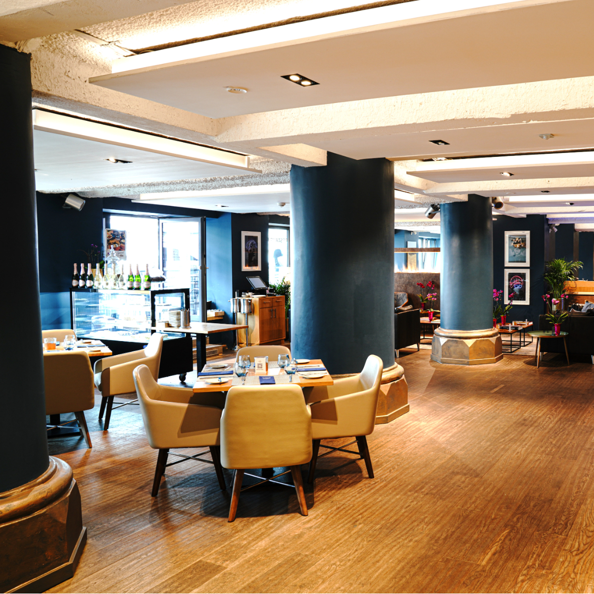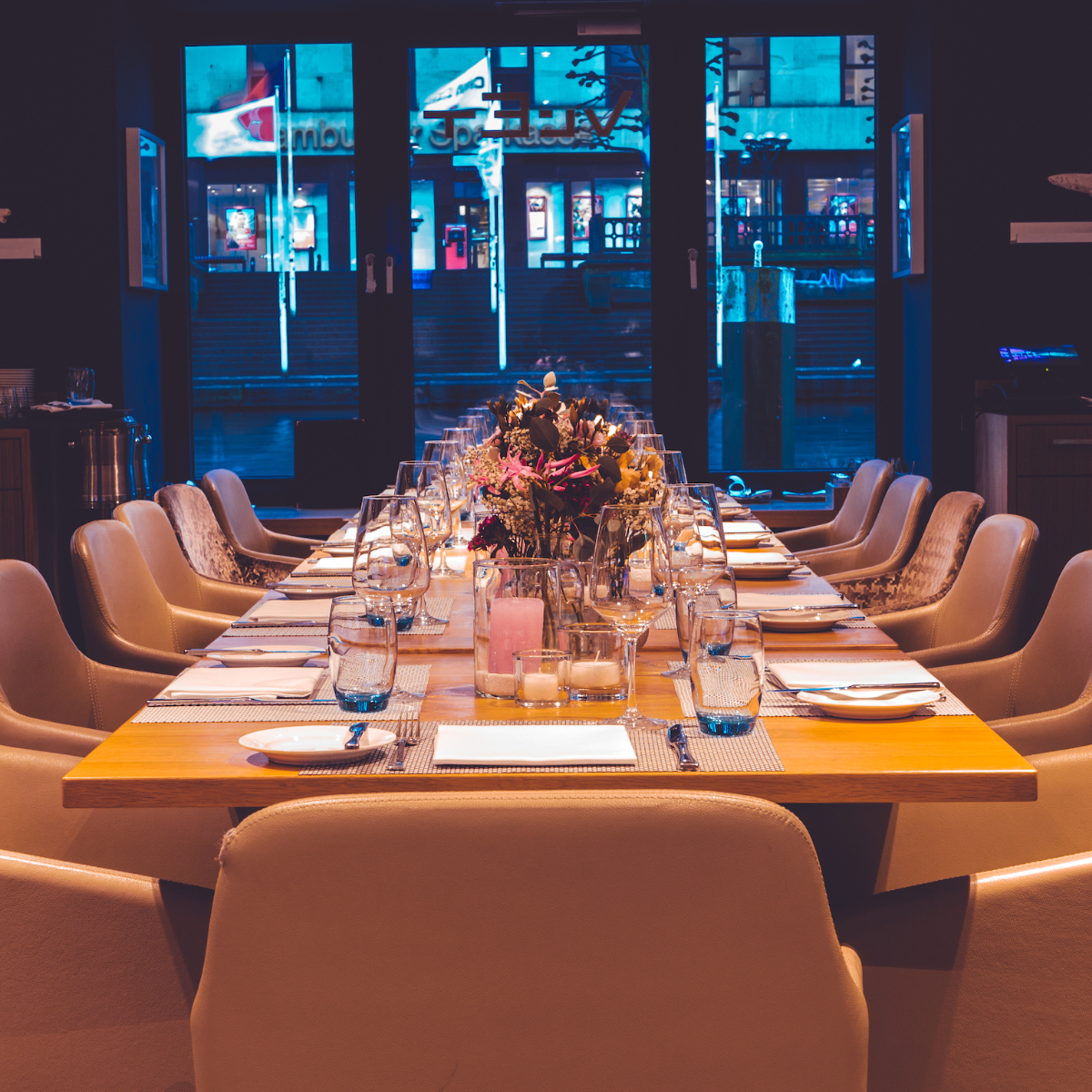 Zentraler geht’s nicht: Das Vlet Kitchen & Bar liegt zwischen Jungfernstieg und Rathaus an der Kleinen Alster – einem Fleet. Daher stammt auch der Name: Vlet ist althochdeutsch und bezeichnet einen Kanal in Küstenstädten. Das Vlet Kitchen & Bar hat eine der schönsten Außenterrassen der Stadt, direkt auf dem Wasser. Doch auch drinnen hat das Vlet einiges zu bieten: Kürzlich wurde es renoviert und kombiniert nun maritime Elemente und Blautöne mit Kupfer und anderen Metallen, das macht es modern und gemütlich. Chic en bleu!