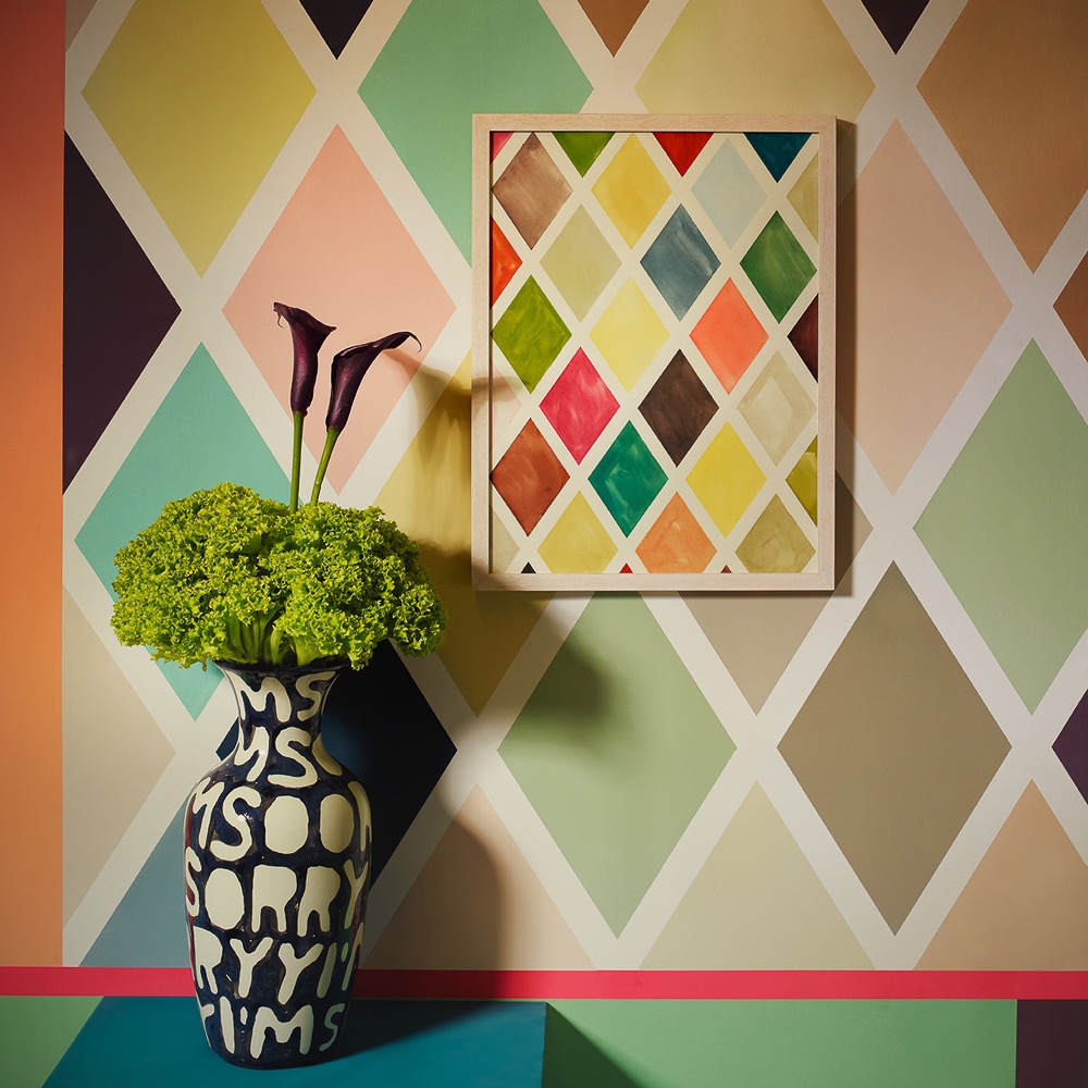 Es ist Liebe auf den ersten Blick. Ich stehe im Atelier der Künstlerin Charlotte Crome in Altona vor einer Wand und bin verliebt. In eine Wand. Genauer gesagt in eine mit großen Rauten bemalte Wand. Die harmonische Farbkombination und die akkuraten Formen lösen eine Art Glücksgefühl in mir aus. "Ja," stimmt mir Charlotte Crome zu, "dieses Feedback bekomme ich sehr oft von meinen Kunden zu hören. Farbe an den Wänden macht etwas mit einem."