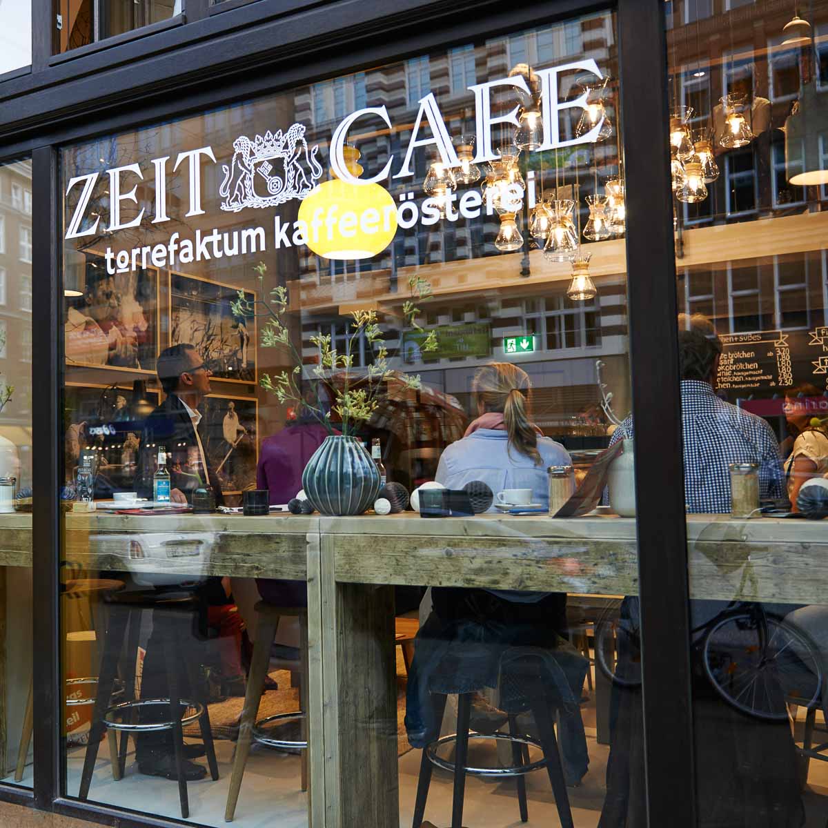 Gemeinsam mit der Hamburger Kaffeerösterei Torrefaktum bietet Die Zeit hier biozertifizierten Kaffee, dem man die Liebe zur besonderen Bohne und die Leidenschaft fürs Rösten duftend und geschmacklich anmerkt. Daher verweilen wir hier lieber mit viel Zeit, als uns einen Coffee to go zu holen und widmen uns in gemütlicher Atmosphäre der verlockenden Kuchenvitrine und der großen Auswahl an Lektüre.