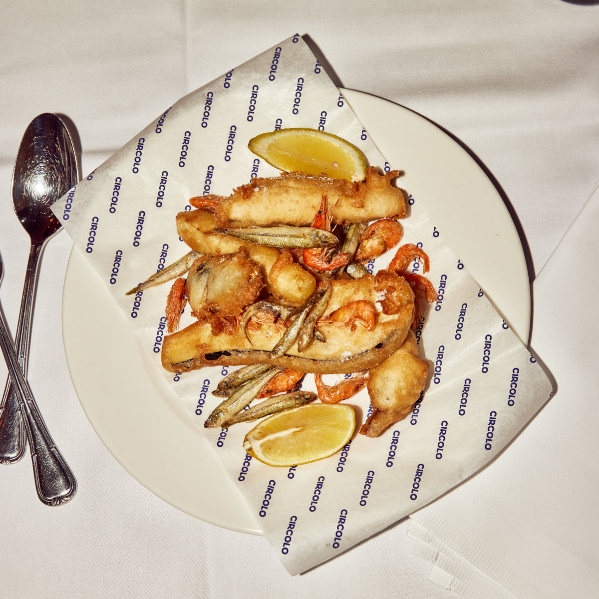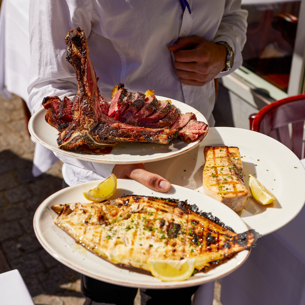 Überhaupt der Holzkohlegrill: Im Grunde genommen macht er das Circolo zum Grillrestaurant. Waldhähnchen, ein kleiner langbeiniger Vogel, Taube, selten auf Speisekarten zu finden, Lamm mit seinen Lieblingsgewürzen Minze und Knoblauch, Steak vom Chianina-Rind oder Langusten – danke, dass die Toskana am Tyrrhenischen Meer, jenem Teil des Mittelmeeres mit klarem, sauberem Wasser liegt –, das offene Feuer bringt einen Reigen an Röstaromen für die Soulfood-Gerichte mit sich.
