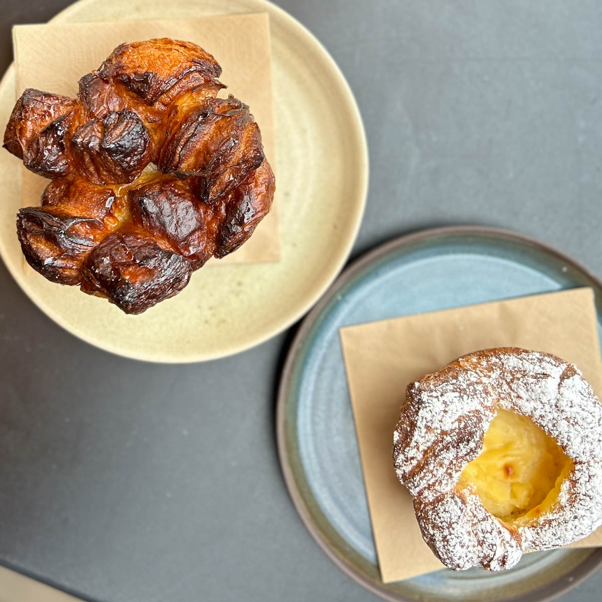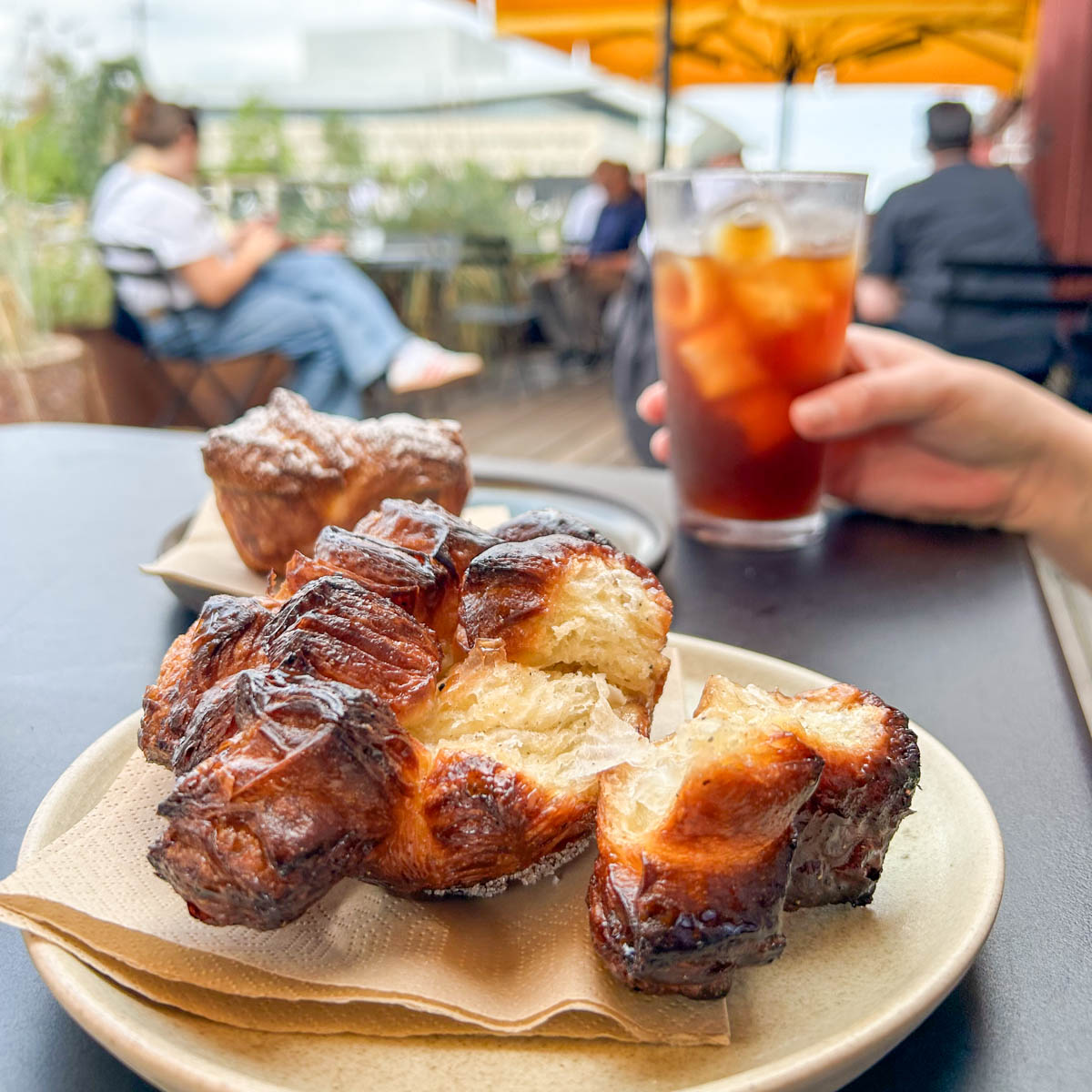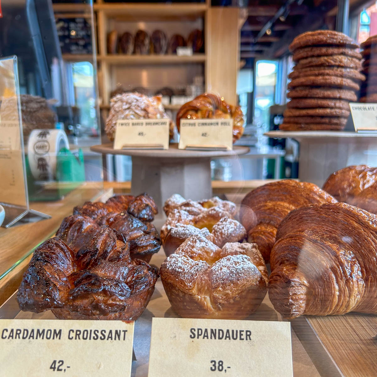 Wie auch auf die anderen Köstlichkeiten der Hart „Heart“ (Herz, auch sehr passend) Bäckerei. Bei den mit sehr viel Butter gebackenen Croissants muss sich Frankreich warm anziehen. Die Kardamombrötchen sind wie saftige Schokokuchen mit einer knackigen Zartbitterschokohülle, Haselnuss-Ganache, Milchschokocreme, Haselnüssen und Meersalz Hartsche Klassiker.
