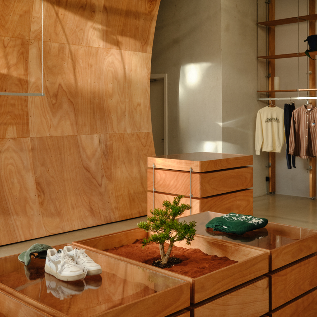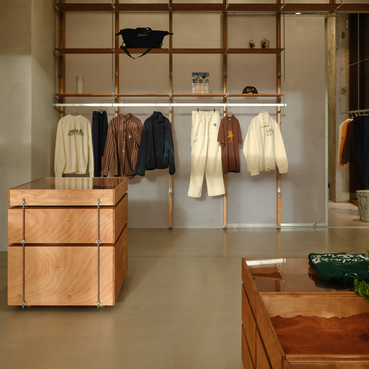 Subtile Tennis-Referenzen – als Hommage an die Palmes Tennis Society – sind in das Interieur eingewoben, ohne aufdringlich zu wirken. Der Raum versteht sich als Treffpunkt und „Clubhaus“ für eine Community, die Sport, Design, Kunst sowie urbanen Lifestyle verbindet. Neben der aktuellen Kollektion aus Ready-to-Wear und Accessoires finden hier wechselnde Präsentationen statt, die Palmes’ interdisziplinären Anspruch widerspiegeln.