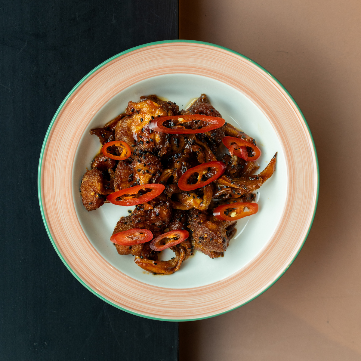 Die Küche vereint internationale Comfort-Food-Klassiker mit hochwertigen dänischen Zutaten. Die Karte ist zum Teilen ausgelegt: Korean Fried Chicken, gebratene Aubergine mit Pistazien und Harissa, glasierte Shiitake, gegrillter Fisch oder Dry-Aged Pork Chops werden in mehreren kleinen Gängen serviert. Vieles wird über offenem Feuer zubereitet – für intensive Aromen und eine lockere, zugänglichen Präsentation.