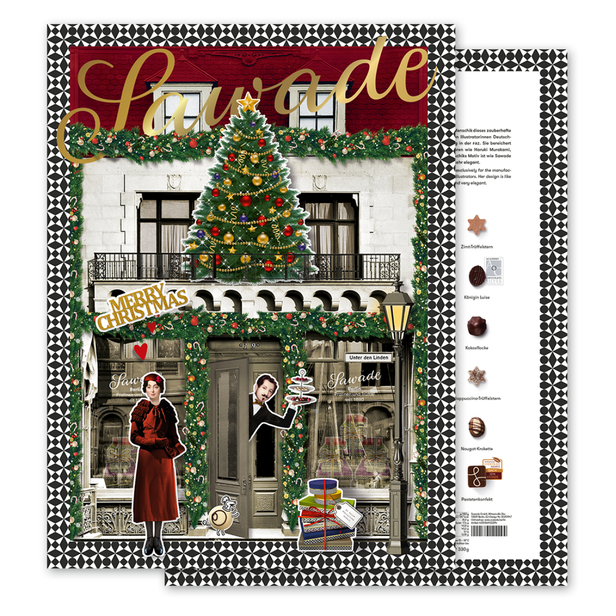 In diesem Jahr gibt es zwei Adventskalender-Motive. Neben dem in 2021 äußerst erfolgreichen Motiv der namhaften Berliner Illustratorin Kat Menschik präsentiert Sawade das Motiv „Der Laden“ und wirft damit einen Blick zurück in die lange Geschichte der Pralinenmanufaktur. Zu sehen sind das erste Ladengeschäft am Prachtboulevard Unter den Linden, Gründer Ladislaus und seine Muse Marie de Savadé.