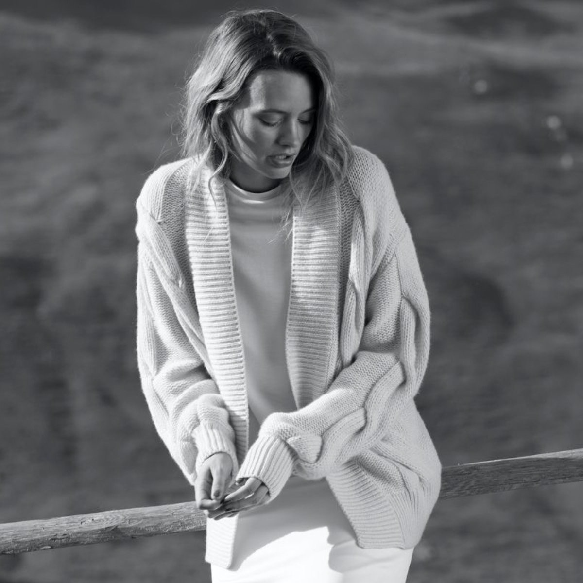 Die Passform des Cardigans ist dank der Balloon-Ärmel angenehm lässig. Das schicke „Cable Knit“-Muster sorgt für das gewisse Etwas. Ohne Verschluss und ohne Knöpfe lädt das himmlisch zarte Kleidungsstück dazu ein, sich darin einzuwickeln und wohlzufühlen – und ist somit das perfekte, zeitlose It-Piece für kalte Wintertage.