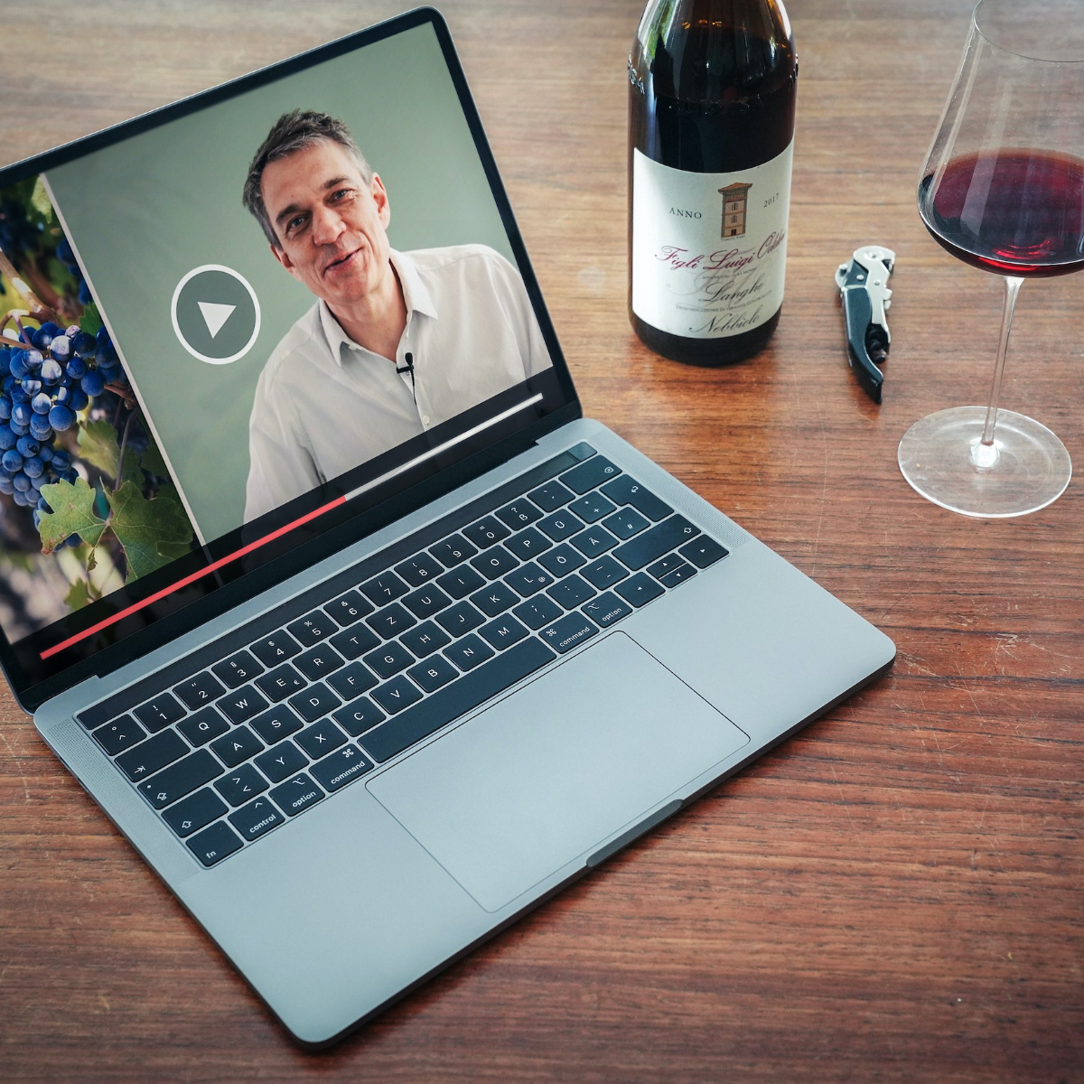 Er liebt und lebt Wein und so enthalten die Verkostungspakete, die für die Online-Tastings zusammengestellt und den Teilnehmern rechtzeitig zugeschickt werden, besondere Tropfen und Entdeckungen, die er mit viel Enthusiasmus kuratiert hat. Das Genusspaket enthält drei Flaschen Wein, dazu hochwertige Chips und Schokolade.