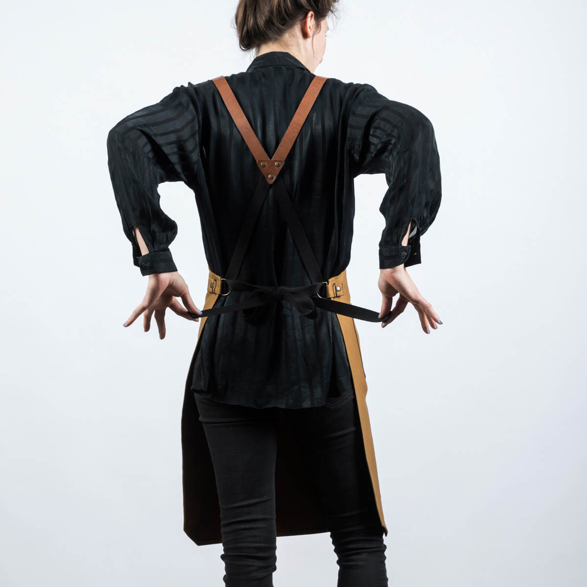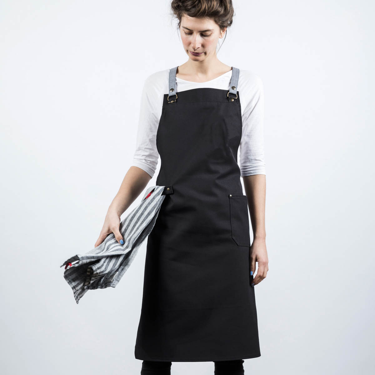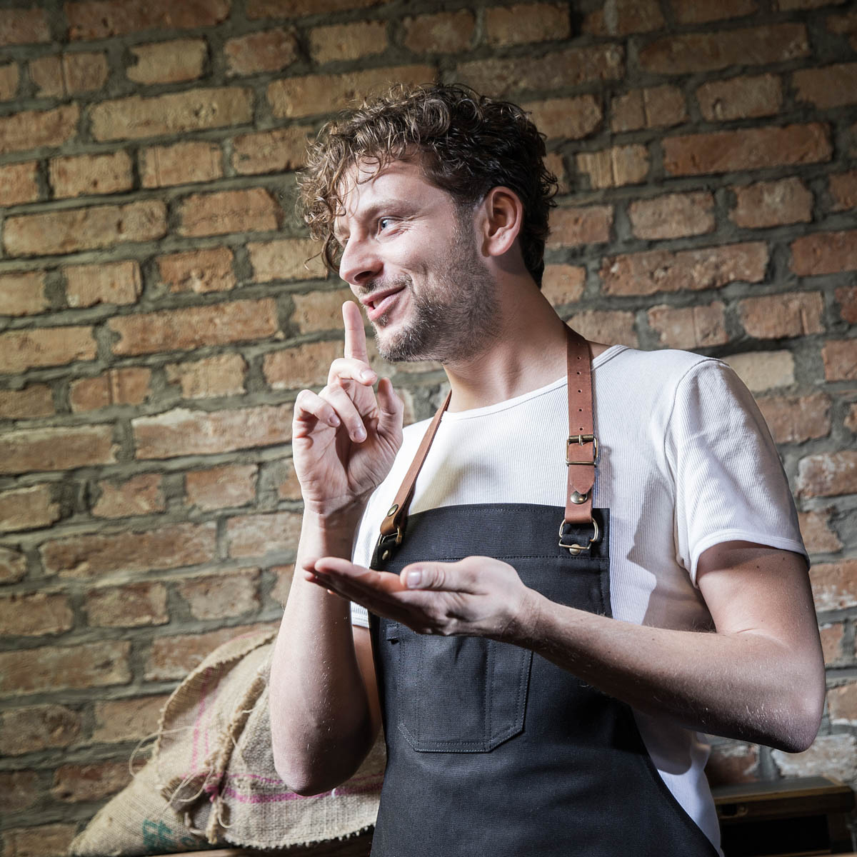 Und ja, die Schürzen der Berliner Manufaktur, die inzwischen eine lange Liste an Kundschaft aus Gastronomie und Hotellerie, aber auch Floristen, Friseuren, Barbieren, Gärtnern und Gitarrenbauer haben, sehen lässig aus. Und erledigen ihren Job. Sie sind zuverlässige Unterstützer, wenn es in der Küche und in der Werkstatt zur Sache geht. Schmutz, welcher Schmutz? Die Schürze, im Profibereich aus stabilem Baumwolle-Syntetikfaser-Mischgewebe, ist sozusagen der Schutzwall.