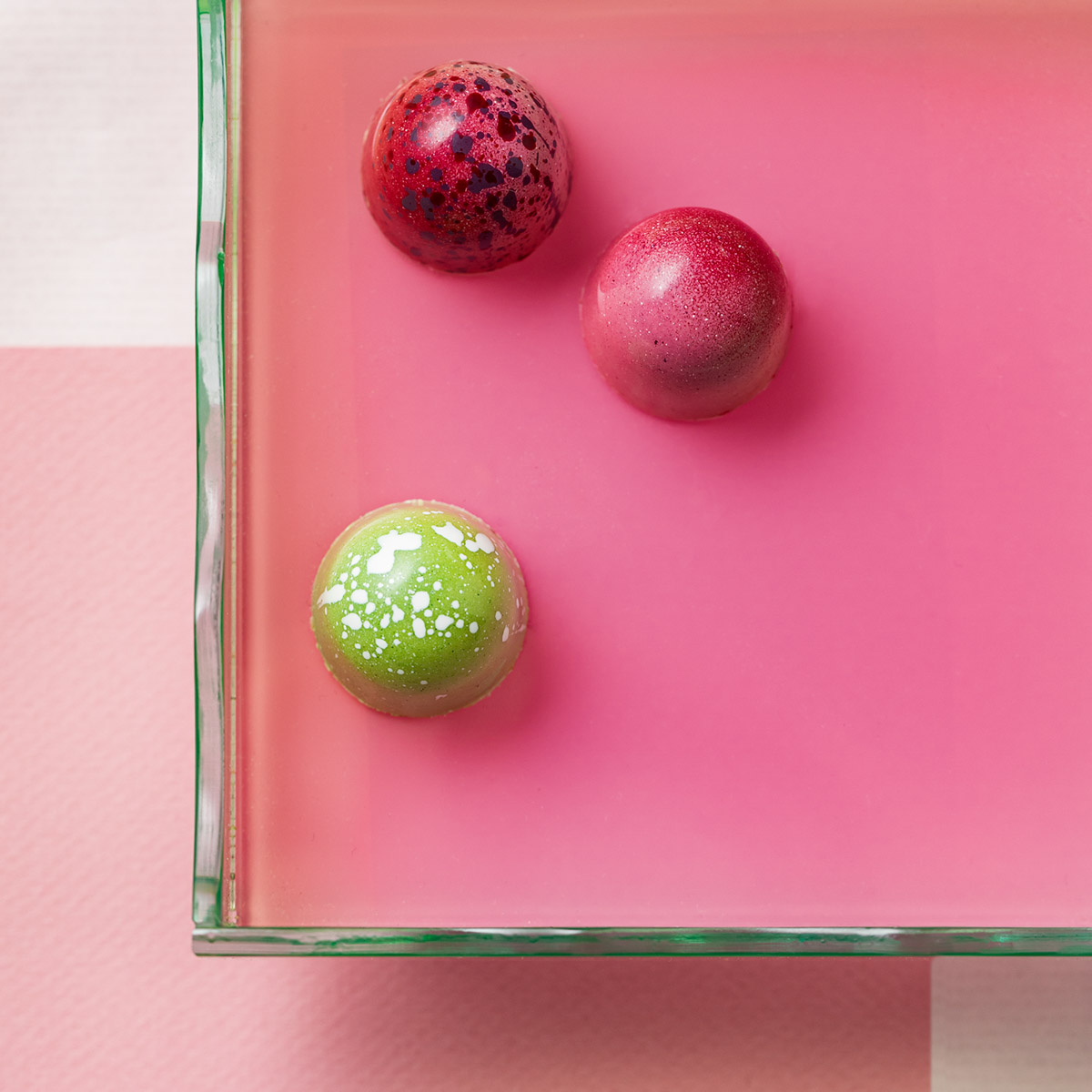 Wer an Pralinen denkt, hat vermutlich ein sehr klassisches Farbspektrum im Kopf: Dunkle und helle Brauntöne, schwarz oder cremeweiß, eventuell gelbe oder rote Toppings, jedoch nichts, was man auch nur im Entferntesten als bunt bezeichnen würde. Bunt sind schließlich meist weniger "edle" Süßigkeiten, wie Bonbons oder Fruchtgummis. Aber weit gefehlt! Wir präsentieren: Marie Mang.