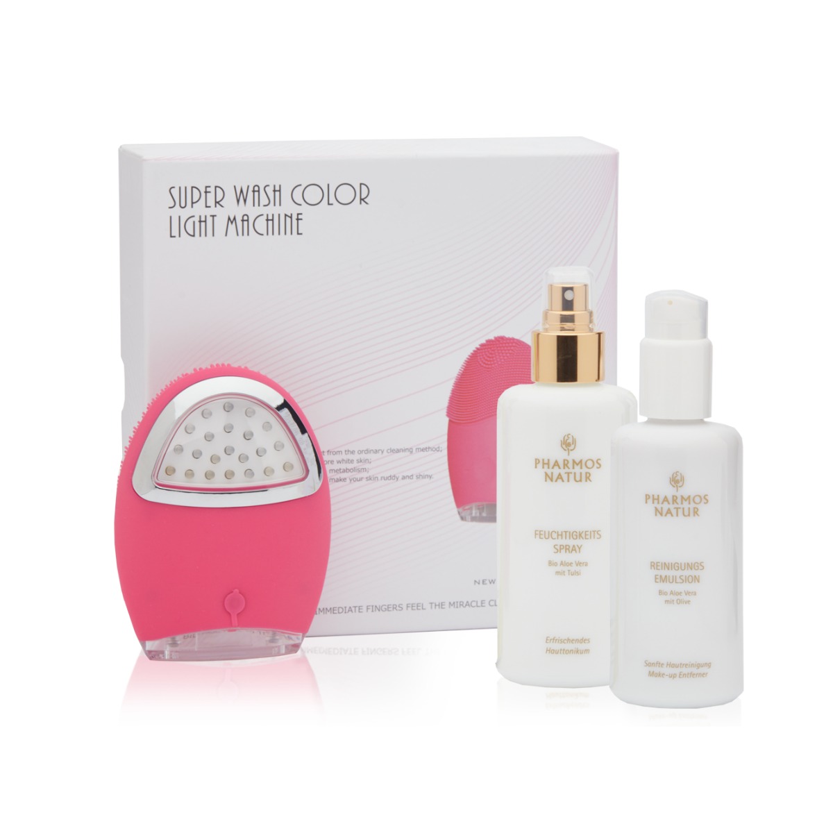 Das Reinigungs-Trio besteht aus einem Gesichtspflegegerät mit LED und zwei Produkten des deutschen Naturkosmetik Labels Pharmos Natur, einem Familienunternehmen vom Starnberger See, das sich voll und ganz dem Thema "Luxury Kosmetik" und "Lebensgesundmittel" verschrieben hat. Alle Produkte des Hauses werden aus außergewöhnlichen Heil-, Verjüngungs- und Regenerationspflanzen aus der ganzen Welt kreiert.