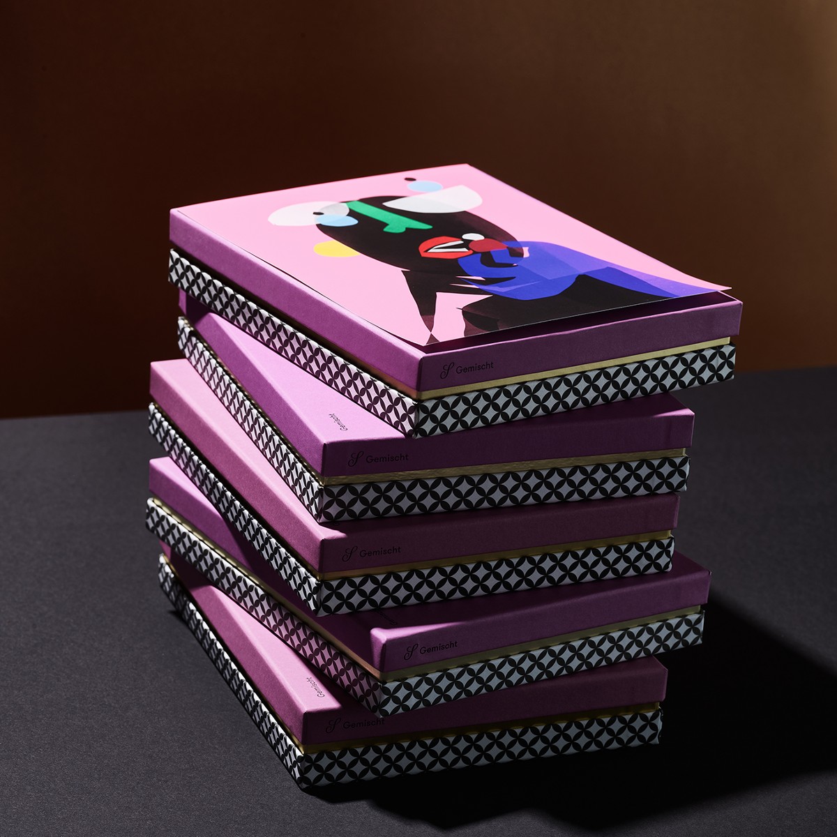 Am 6. Oktober jedoch erhalten die ohnehin schon stilvollen Sawade-Schachteln noch ein Upgrade. Von der Berliner Online-Galerie Kunst/100 kuratierte Kunstwerke verwandeln die Kartonagen der Berliner Traditionsmarke in kleine Gesamtkunstwerke. Auf je 100 limitierte Kunstdrucke, gestaltet von fünf Künstler*nnen, aus dem Portfolio der Online-Galerie Kunst/100, werden Pralinenschachteln mit 20 gemischten Pralinen beigelegt.