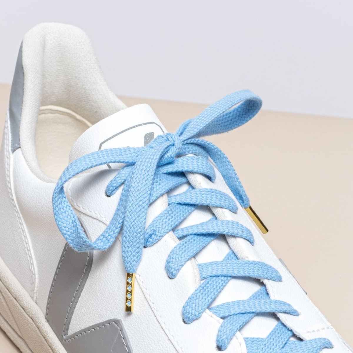 Farbe und Länge kann man bei Senkels freilich individuell anpassen – je nachdem, was beim limitierten Lieblingssneaker eben am besten aussehe. Deshalb bietet Senkels auch Wunschlängen an, sie werden von Hand zugeschnitten. An den Enden der hochwertigen Schnürsenkel verarbeitet Daniel Metallspitzen in sechs verschiedene Veredelungen. „Im Gegensatz zu den Originalsenkeln macht eine Metallspitze eine ganz andere Wertigkeit. Bei Lederstifel mit Metallösen oder Schnürhaken aus Messing oder Nickel ist die Senkelspitze im gleichen Finish ein cooles Detail“, findet er.