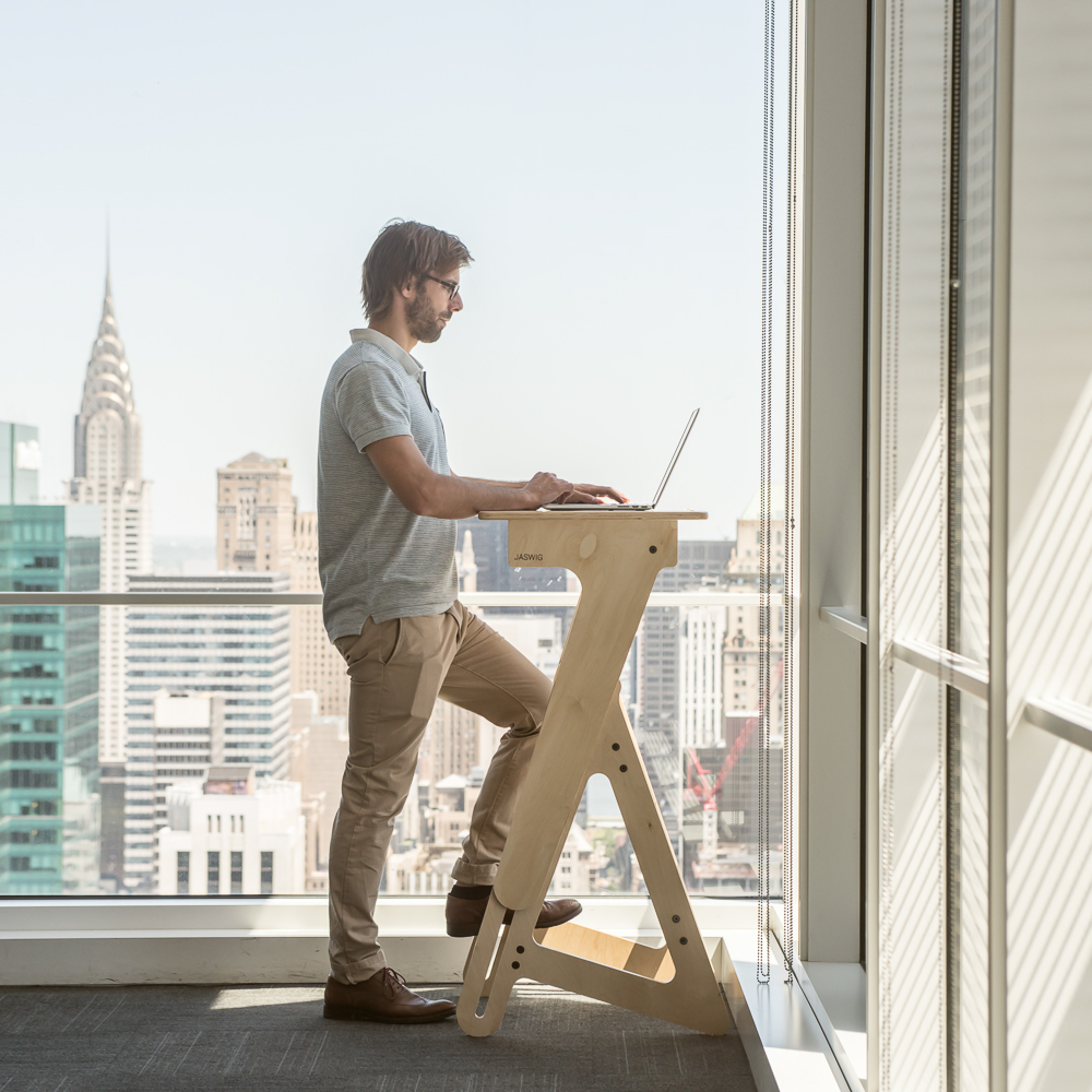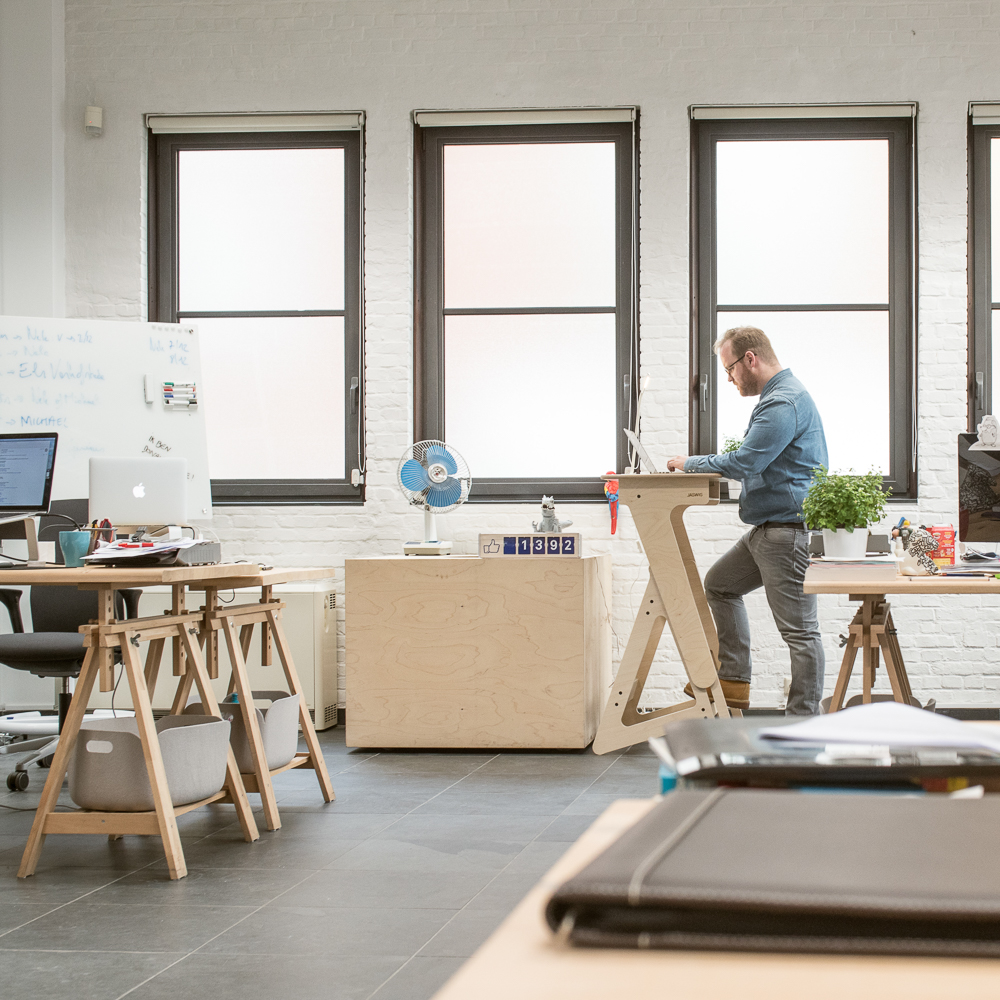 Vorbei die Zeiten, während derer ich vor alten Pappkartons oder Beistelltischen stand, die ich mir provisorisch auf den Schreibtisch gestellt hatte, um im Stehen arbeiten zu können. Sowohl zu Hause, als auch während externer Projekte in Großraumbüros.