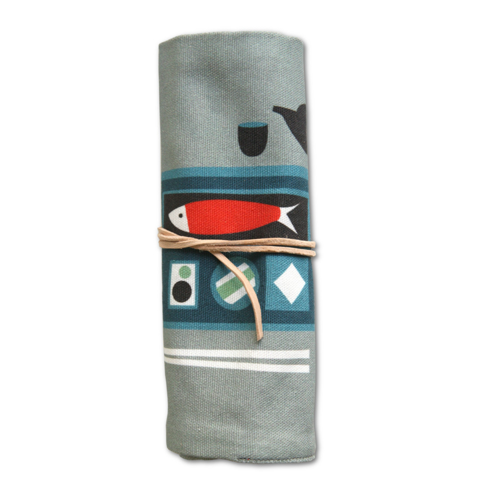 Diese großartige Stifttasche haben wir im Online Shop der Berliner Agentur Pleased to meet entdeckt. Sie wird von Hand in Deutschland bedruckt und genäht. Zwei lange Lederbänder halten alles zusammen und sorgen dafür, dass keines der darin verstauten Utensilien verloren geht. Ich liebe die Layouts des Berliner Grafik Büros und wie man sieht, machen sie sich nicht nur auf Grußkarten und Geschenkpapier gut.