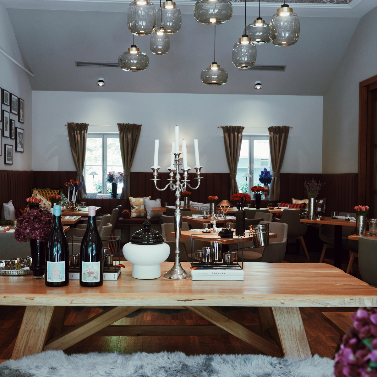 Die neuen Betreiber Lukas Spendler und Daniel Egger haben das Traditions-Lokal modernisiert und in eine stylishe Gourmet-Gastro mit alpinem Flair verwandelt. Das Interieur besteht aus viel Holz und Glas nebst Accessoires in Violett und Grün.