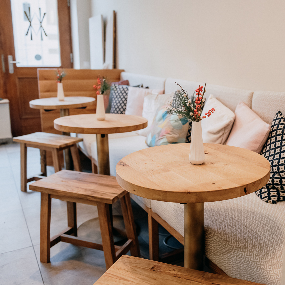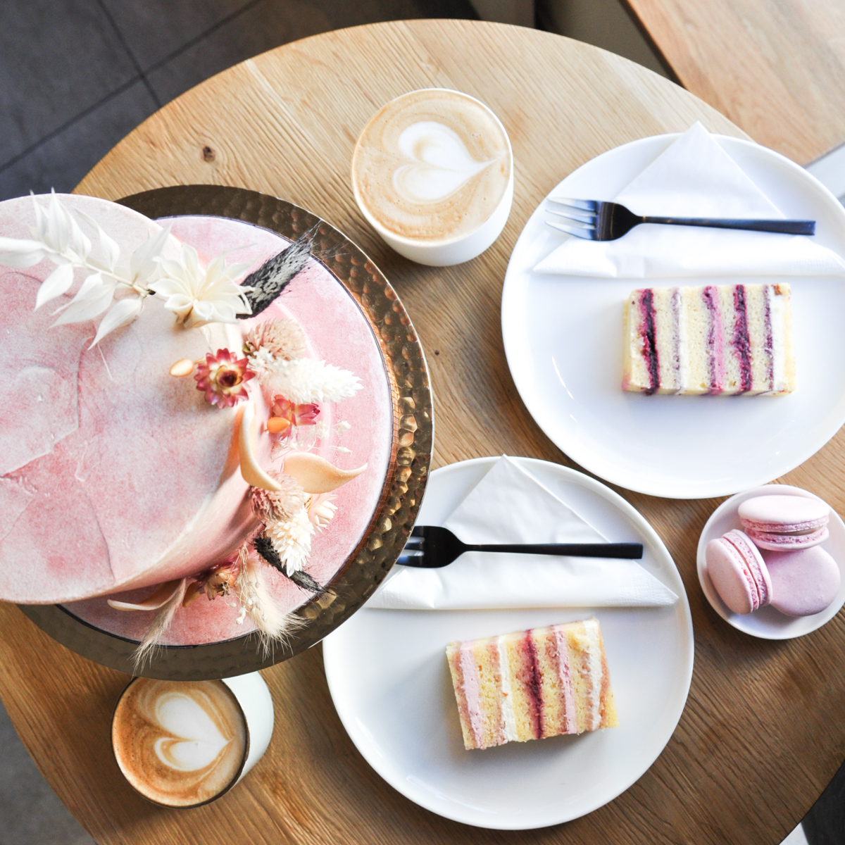 Als "unique cake design" bezeichnet die Konditor-Meisterin ihre himmlischen Torten- und Kuchen-Kreationen. 2019 eröffnete Alexa von Harder ihren Showroom mit integriertem Café im noblen Stadtteil Bogenhausen unweit des Prinzregentenplatzes. Das Interieur besteht aus schlichten Holztischen, bunten Kissen und gemütlichen Sitzbänken aus cremefarbenem Stoff – stimmig und stylish.