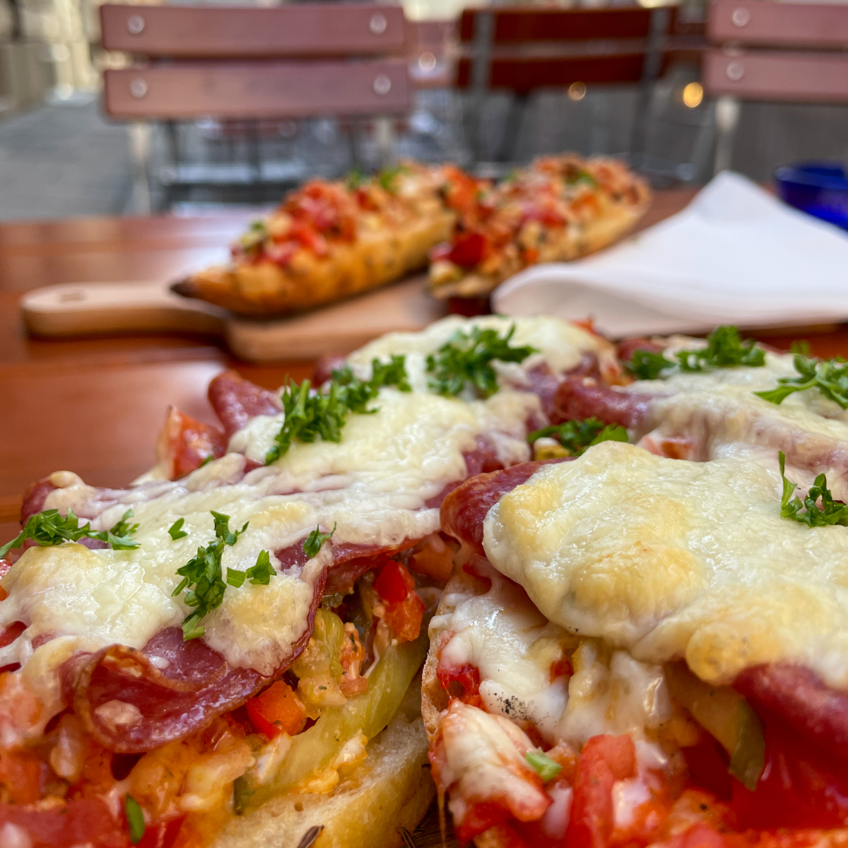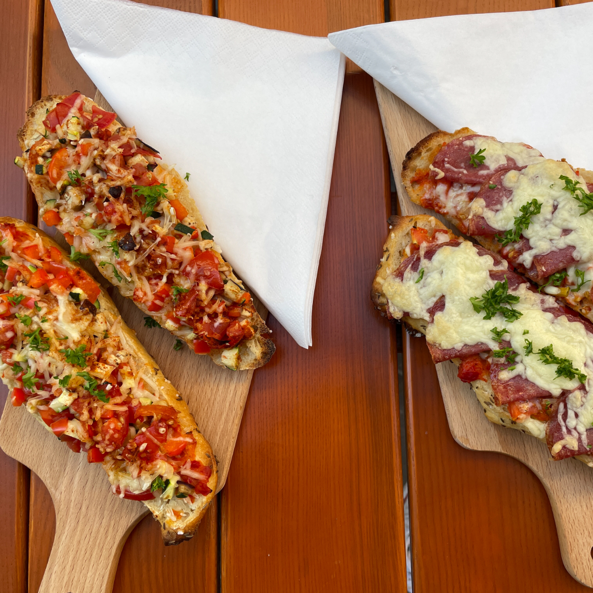 Eine weitere Besonderheit neben der fachlich perfekt zubereiteten Drinks ist die Snack-Karte im Simsalabim. Es gibt sogenannte Seelen - die schwäbische Sauerteig-Variante vom Baguette. Ob mit Schinken oder veganem Käse garniert, als Veggie-Variante, oder im Flammkuchen-Style: Wir sind nicht nur angetan vom Geschmack der überbackenen Bio-Dinkelbrote, die aus der Truderinger Bäckerei Cumpanum stammen, sondern auch von der Idee dazu, eine in München (noch) relativ unbekannte schwäbische Spezialität zu servieren statt Pizza oder dem typischem Chips-Oliven-Mix.