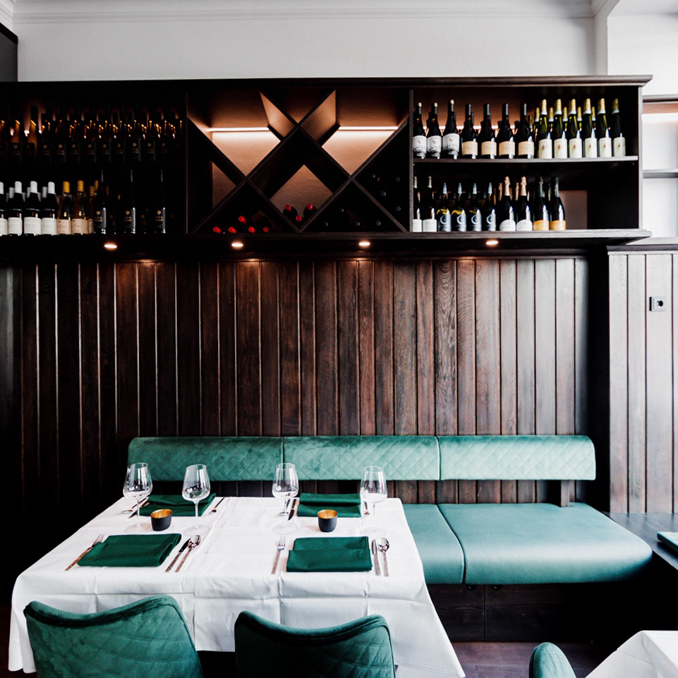 So überzeugend die Küche, so heimelig das Ambiente: Dunkles Holz, grüner Samt und dekorative Schwarz-Weiß-Elemente sorgen für einen Mix aus gemütlichem Bibliotheks-Feeling und modernem dolce vita-Flair. Wer eine erstklassige und sehr persönliche Weinberatung von einem aufstrebenden Jung-Sommelier möchte und ein Faible für mediterrane Spezialitäten hat, ist im Barele genau richtig.