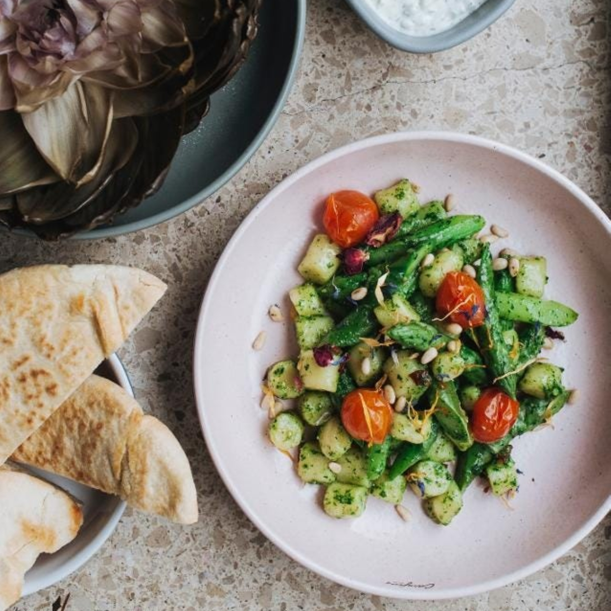 Von aromatischen Vorspeisen wie Saganaki (frittierter Feta mit Panko, Bio-Ei, Radicchio, Birne, Zitrone für 9 Euro) und Couscous (8 Euro) bis hin zu Pasta-Gerichten (ab 15 Euro) und Signature Dishes wie Giouvetsi – einer Art Auflauf mit Lamm und typisch griechischen Reisnudeln (17 Euro).
