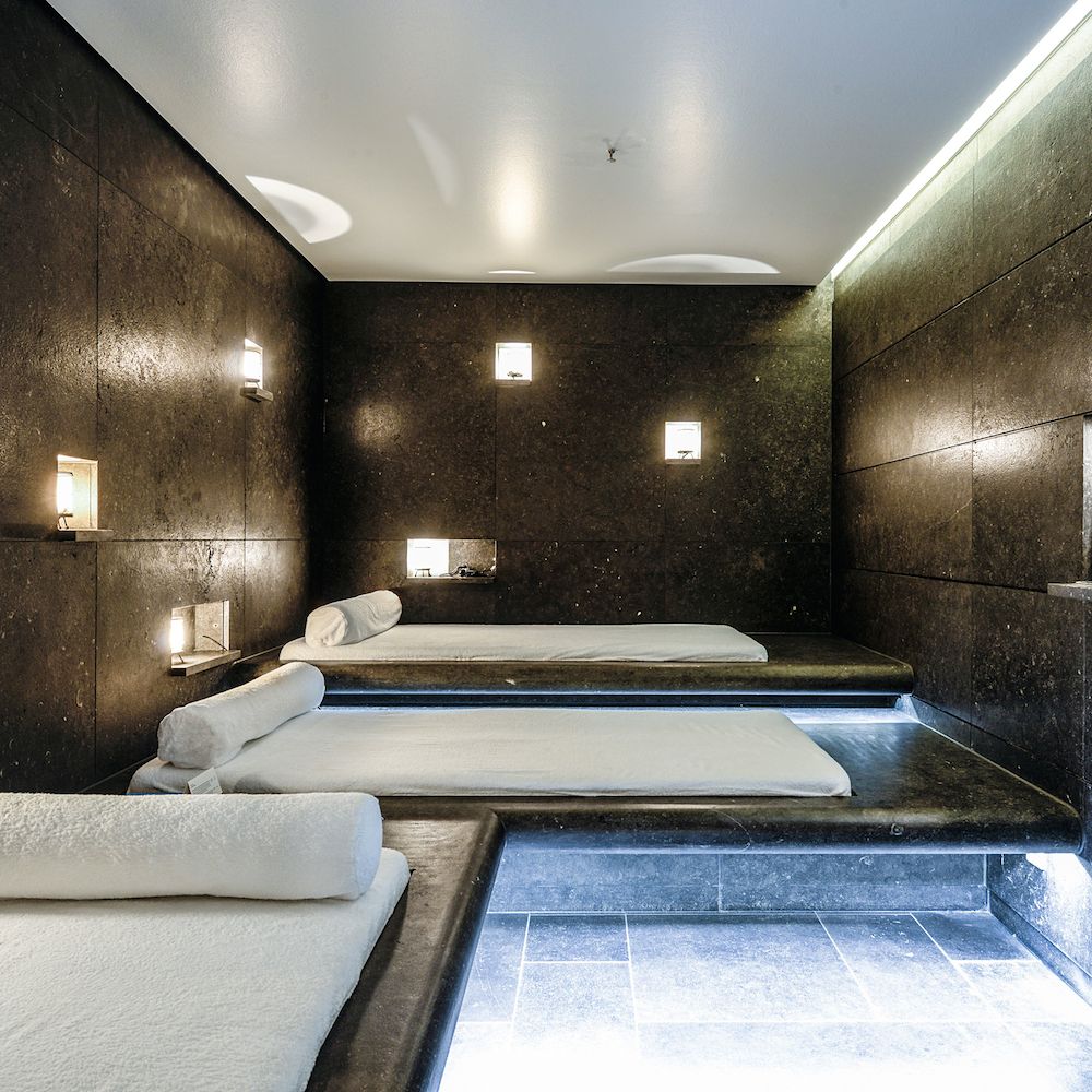 Biosauna mit Farbtherapie, finnische Saune und klassisches Aromadampfbad sorgen gemeinsam mit Pool - je nach Wetterlage unter freiem Himmel oder Panorama-Glasdach - sorgen für Entspannung auf höchstem Niveau. Auch Tauchbecken und Ruheraum finden sich in dem Wellness-Refugium, das sich auf 1300 Quadratmeter erstreckt.