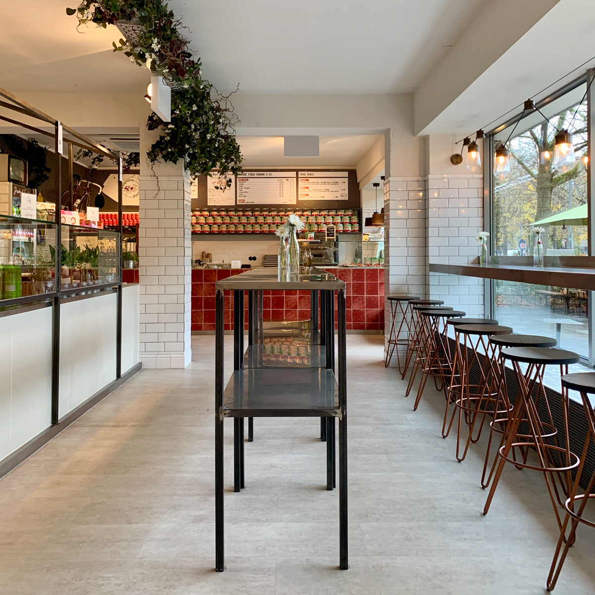 Zum anderen knackige Salate auf Grünkohl-Basis, die nach New-York-Vorbild gehackt werden, sowie herrlich luftig-leichte Pinsa Romana aus Italien. Diese Ur-Form von Pizza ähnelt optisch einem belegten Fladenbrot und schmeckt himmlisch. Unser Favorit: die Mozza Bomb mit Burrata, kalabrischer Salami und Tomaten. Alle Gerichte werden auf Wunsch geliefert und es gibt sie, ganz im Sinne einer Markthalle, natürlich auch zum Mitnehmen.