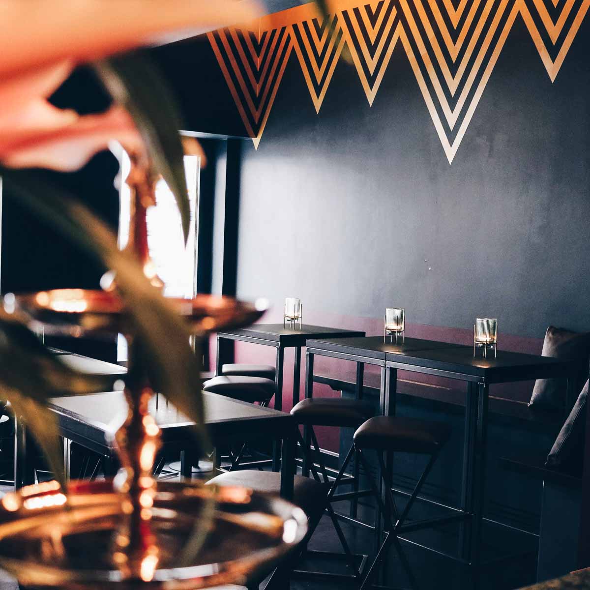 Highlight und Namensgeber der Curtain Call Bar ist der goldfarbene Vorhang, der die rechte Wand der Bar in wunderschöner Detailarbeit ziert. Für das Wandbild konnten die Gründer die Bühnenmalerin des Residenztheaters, Katja Markel, gewinnen. Warum "Curtain Call"? Der Ausdruck steht für die letzte Verbeugung der Darsteller nach einem Theaterstück auf der Bühne.
