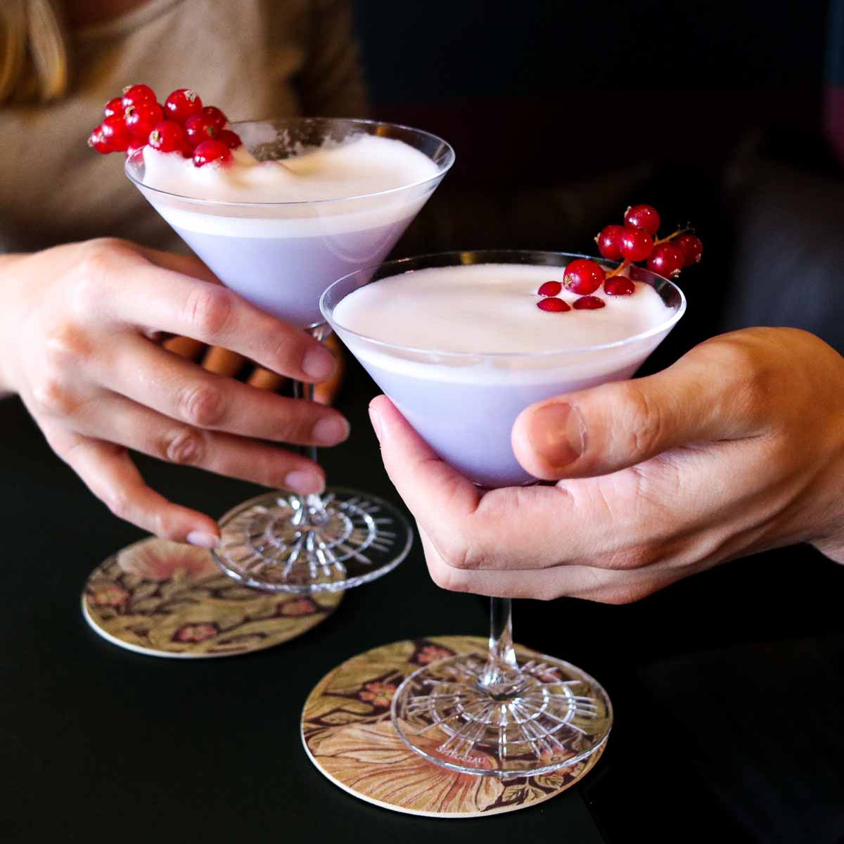 Es war ein guter Zufall, dass die Bar nur ein paar Häuser weiter der Hof-Werkstatt liegt, in der die Kindergartenfreunde Max Muggenthaler und Tim Steglich 2015 ihren ersten Gin destillierten. Das Besondere daran: Das Getränk in tiefem Blau färbt sich mit Tonic Rosa.