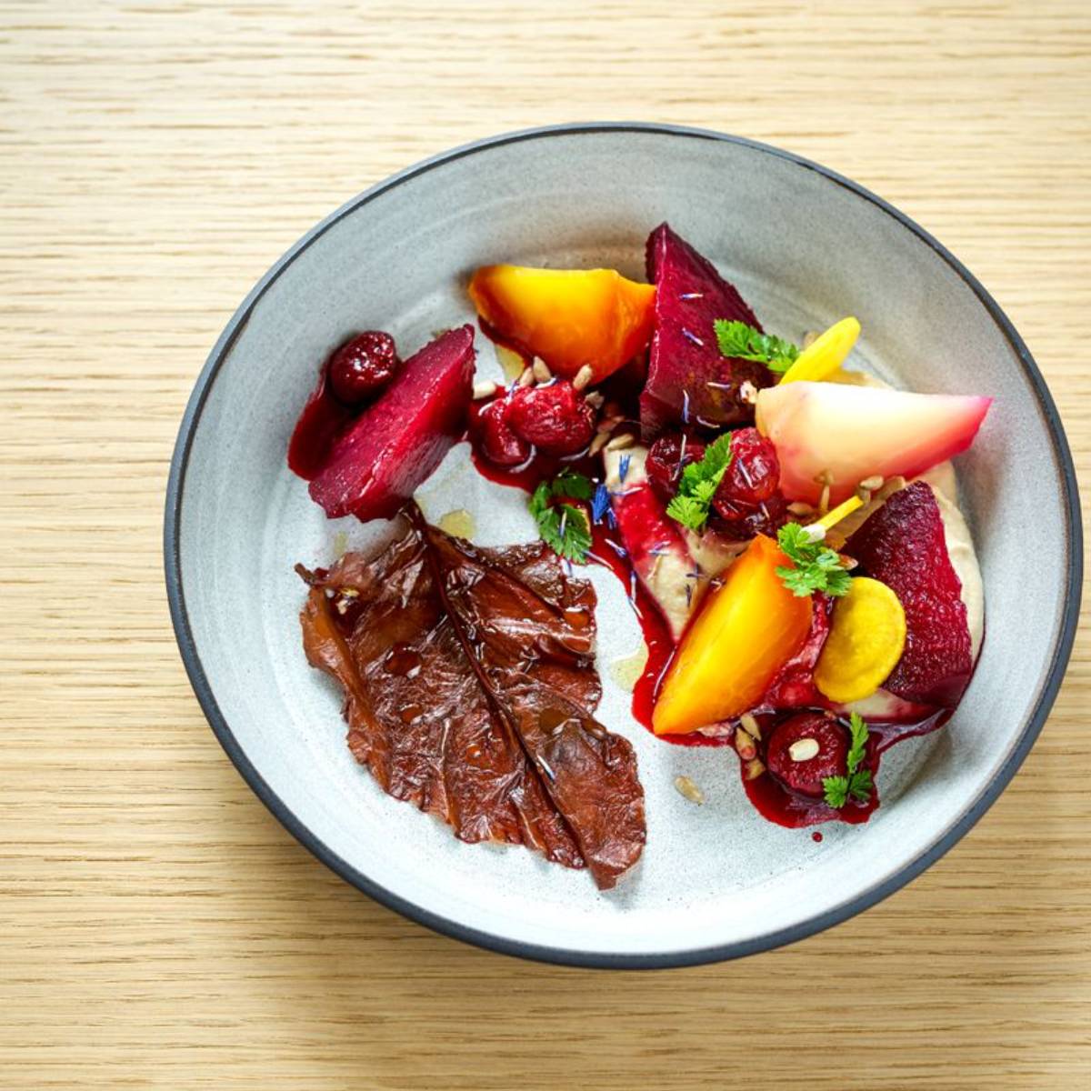 Die Küche ist ehrlich, nachhaltig und einfach extrem köstlich. Die aktuellen Menü-Boxen, die es „to go“ gibt, bestehen aus vegetarischen, teils veganen Basis-Bestandteilen und Add-Ons in Form von Fisch und Fleisch. So kann man sich sein Essen individuell zusammenstellen und zuhause nach gut erklärter Schritt-für-Schritt-Anleitung zubereiten. Das fördert nicht nur die Lust auf frische, regionale Lebensmittel, sondern befeuert auch den Genuss auf das, was später auf den Teller kommt.