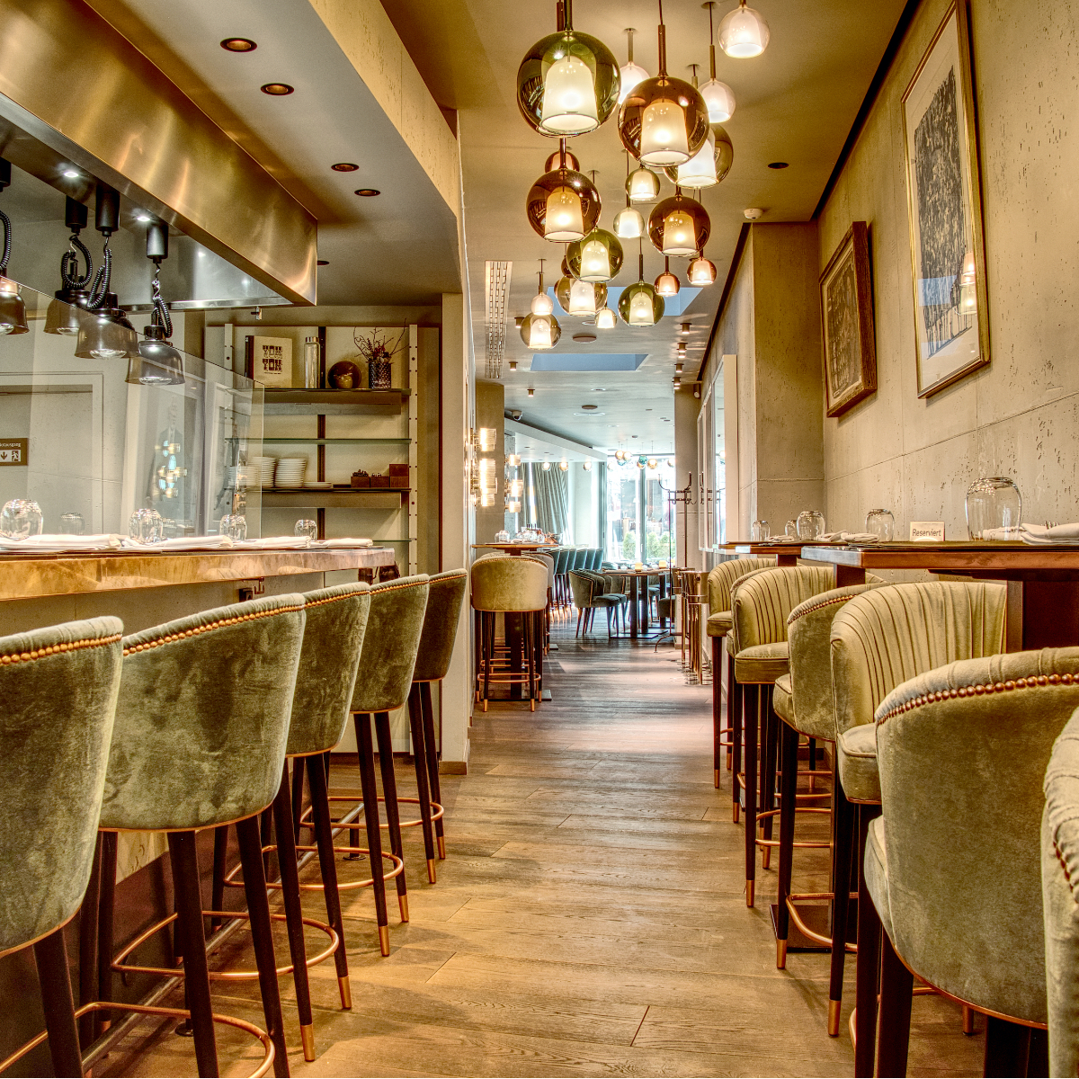Das Ambiente des Bar-Restaurants punktet wiederum mit modernem Design, Gold-Elementen, Samt-Möbeln, Beton-Wänden und zeitgenössischer Kunst. Der Mix aus Designer-Showroom und Great Gatsby ist nicht neu, passt aber perfekt zur Erlebnis-Gastronomie vom Doma.