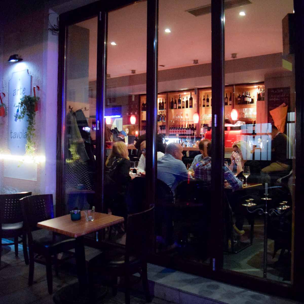Aber als ein paar Jahre später der Zeitungskiosk nebenan schloss, ergriffen sie die Chance, brachen die Wand durch und erweiterten auf die heutige Größe. Im vergangenen Jahr wurde das Arte in Tavola erneut umgestaltet. Jetzt gibt es keine Stehtische mehr und alles erstrahlt heller. – Frisch eben! Aber die Weinregale und die darin lagernden, von Toni persönlich bei italienischen Winzern ausgesuchten Tropfen, sind erhalten geblieben.