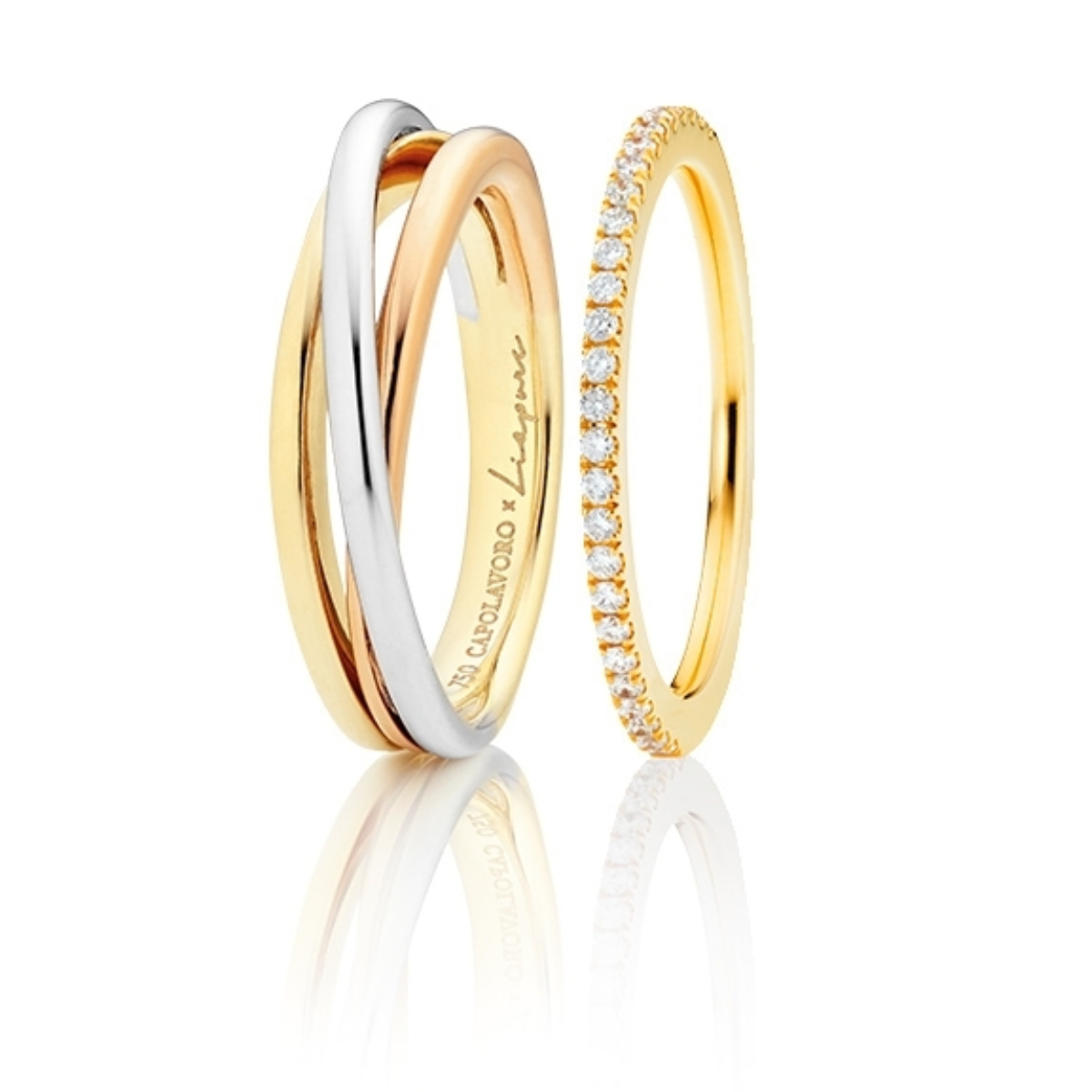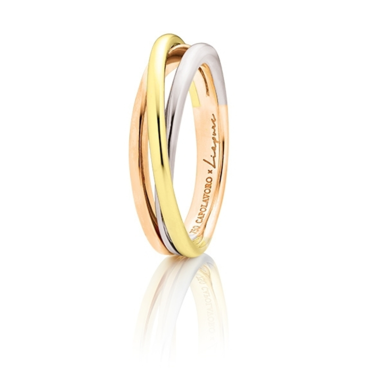 Nun hat sich das Erfolgs-Duo zusammengetan und eine hochwertige Kreation namens Trillion Times lanciert. Drei Ringe aus unterschiedlichen Legierungen von 750er Gold ergeben einen ganzen, lassen sich aber auch einzeln tragen und somit vielfältig kombinieren - das perfekte Accessoire zu allen Stücken der Liapure-Kollektion und zugleich eine Neuheit im ansprechenden Sortiment von Capolavoro.