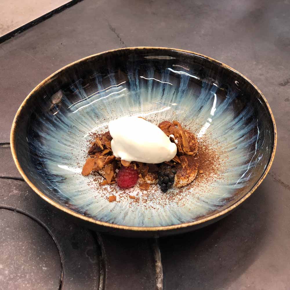 Zu jeder Zutat kennt er Herkunft und Geschichte. Ein charmanter Storyteller aus dem Salzkammergut, der unter anderem bei den Sterne-Köchen El Bulli und The Fat Duck gelernt hat. Eine Anekdote hier, eine überraschende Info dort. Man isst, hört zu, isst und hört zu. Ein gelungener Genuss für Augen und Ohren.