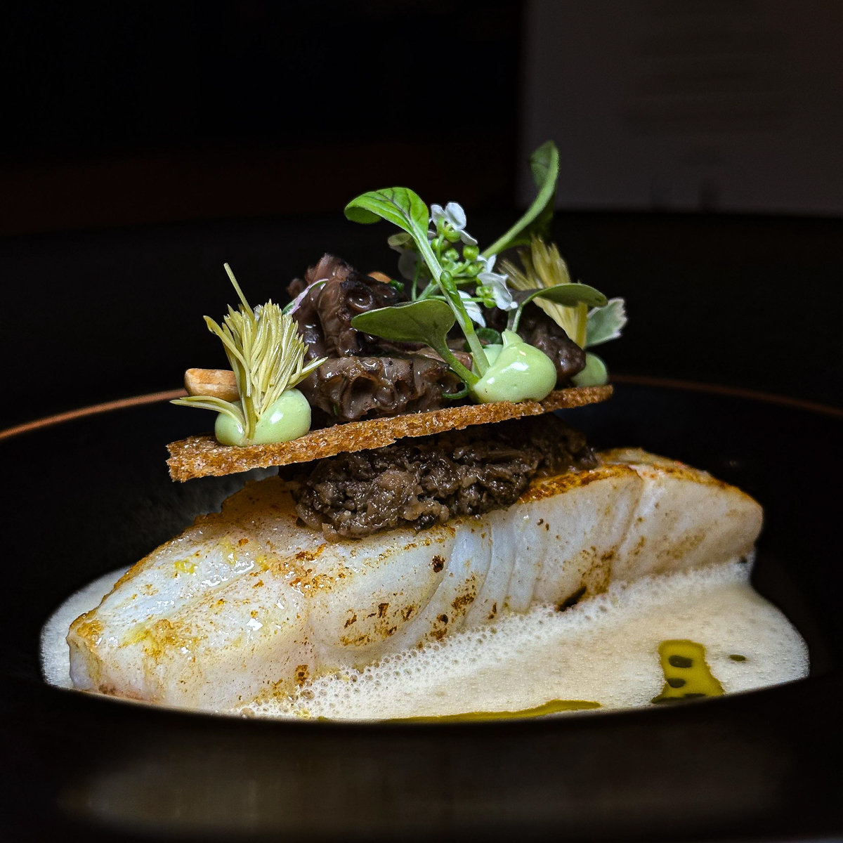 Das Degustations-Menü besteht aus neun Gängen und setzt seinen Fokus auf japanische Zutaten und französische Techniken. Exzellent zubereitete Gerichte wie bretonischer Hummer mit Shisho, Steinbutt an Beurre Rouge oder Lamm vom niederbayerischen Gutshof Poltinger sind nur einige, saisonale Beispiele.