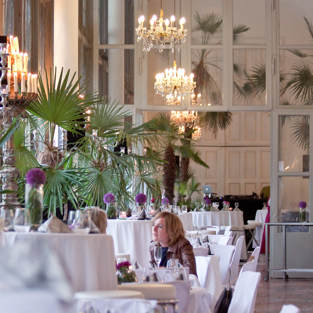 Auch für Veranstaltungen lässt sich das Schlosscafé mieten, ob für den runden Geburtstag, oder eine Hochzeit. Doch auch, wenn es nichts Bestimmtes zu feiern gibt: Der herrliche Blick ins Grüne und das besondere Flair vom nahegelegenen Schloss sind Grund genug für einen Besuch im Palmenhaus.