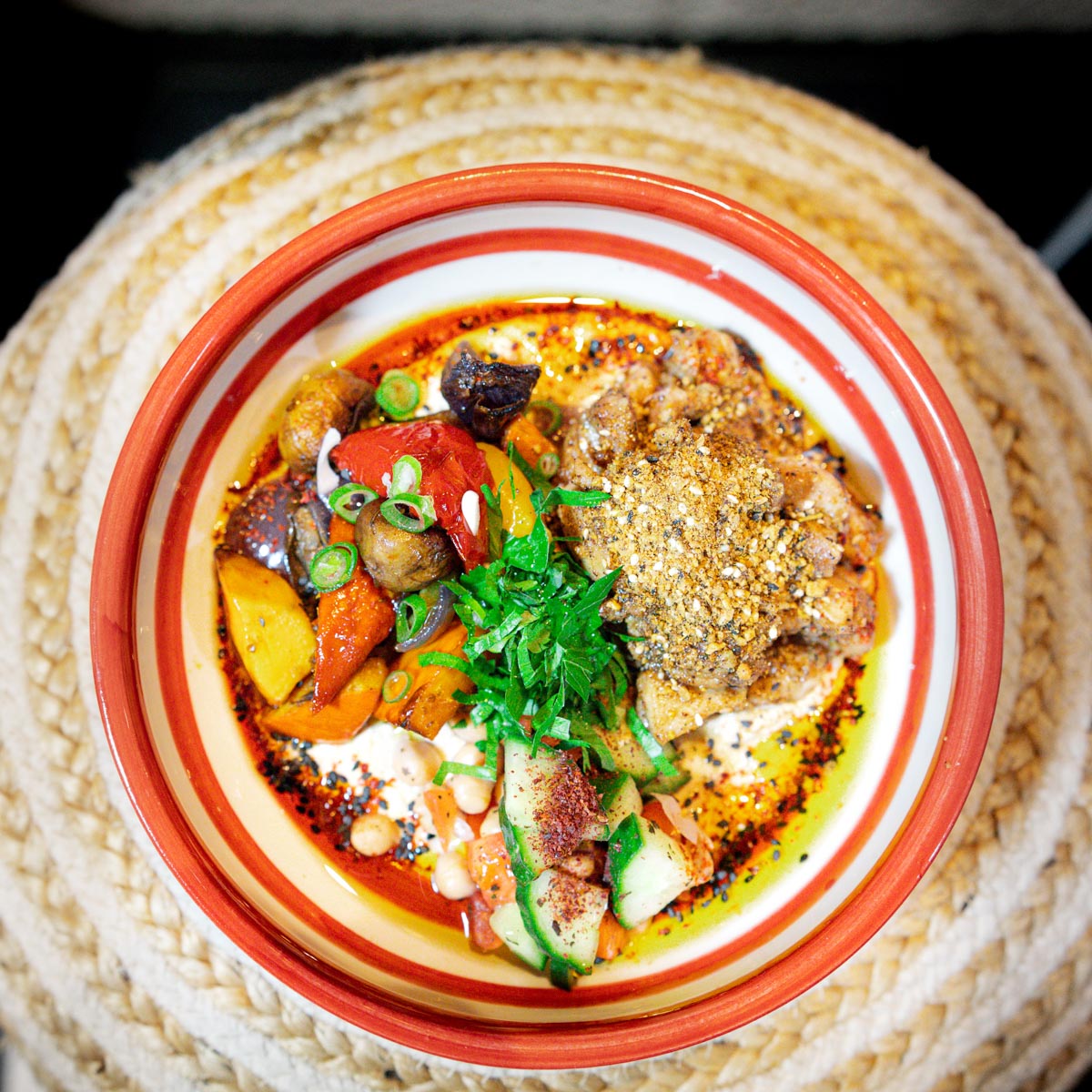 Diese Symbiose levantinisch inspirierter Spezialitäten macht das Restaurant einzigartig in München - sogar Teile vom Geschirr sind eine Sonderanfertigung und zwar made in Spain, von einer dortigen, traditionellen Töpferei. „Unsere klassischen Schalen im "Servus Habibi"-Rot werden eigens für uns produziert“, erklärt Inhaber Felix Busch.