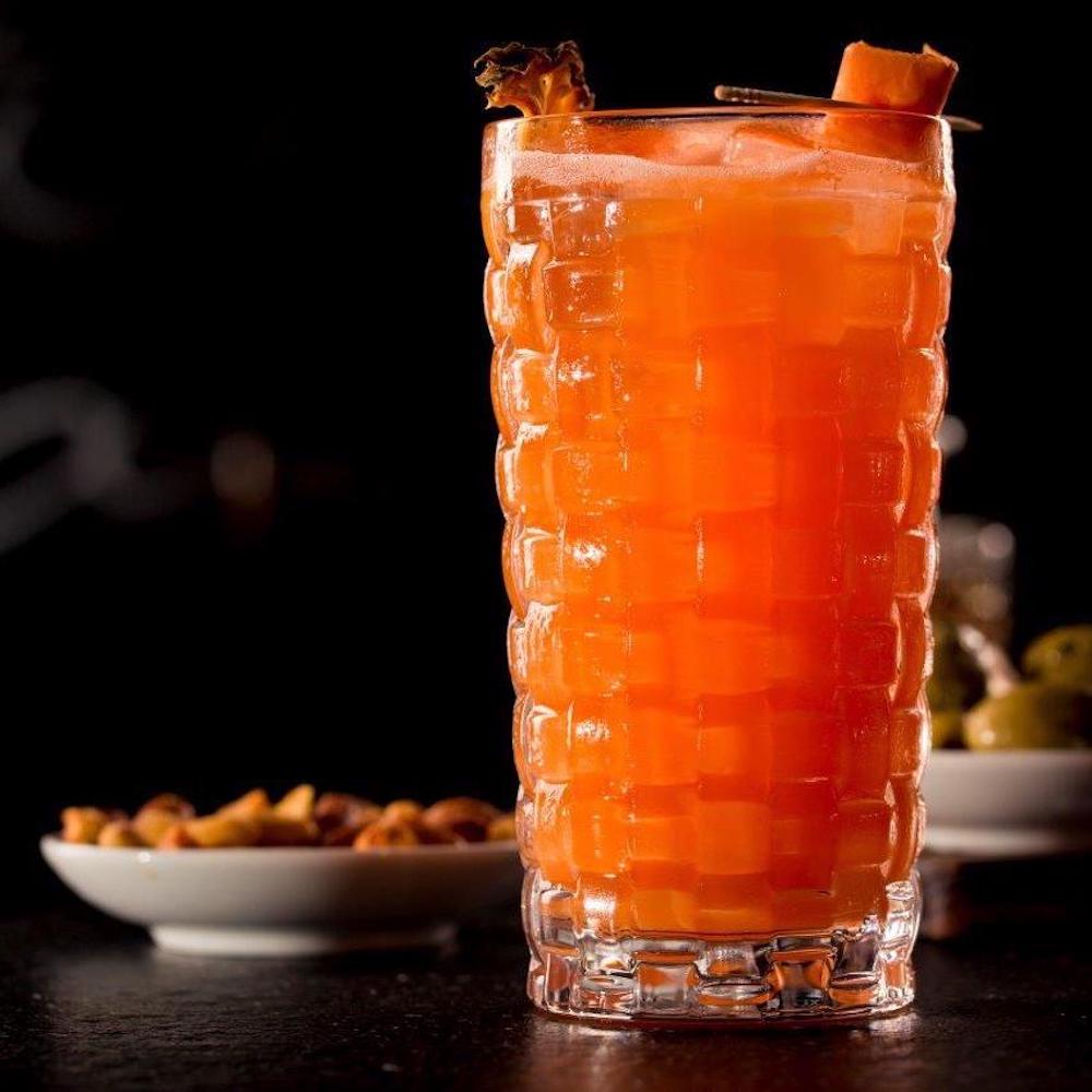 Wir entscheiden uns zum Start für einen "Earl Pepper" aus der Kategorie Gemüse. Der Cocktail begeistert uns mit seiner ungewöhnlichen, doch sagenhaft guten Geschmackskombination aus dem namensgebenden schwarzen Tee und roter Paprika, die man fein, aber akzentuiert herausgeschmeckt.