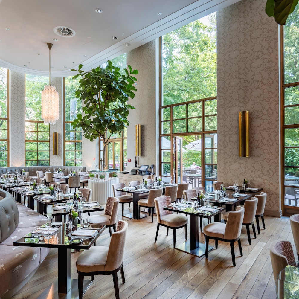Passend zum dolce vita-Flair: Das helle, luftige Interieur mit mediterraner Bepflanzung und bodentiefen Fenstern, die einen tollen Ausblick auf die schöne Terrasse und auf den alten Botanischen Garten gewähren.