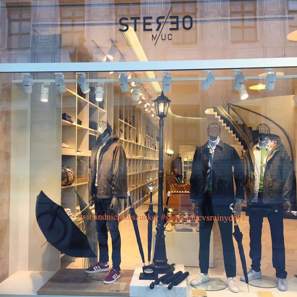 Die Kombination aus Mode und Café ist individuell und hier wirklich schön umgesetzt. Im Erdgeschoß befindet sich das Herrenmodegeschäft Stereo Muc. Die Auswahl an Bekleidung, Accessoires und Schuhen ist groß und guter Geschmack im Vordergrund.