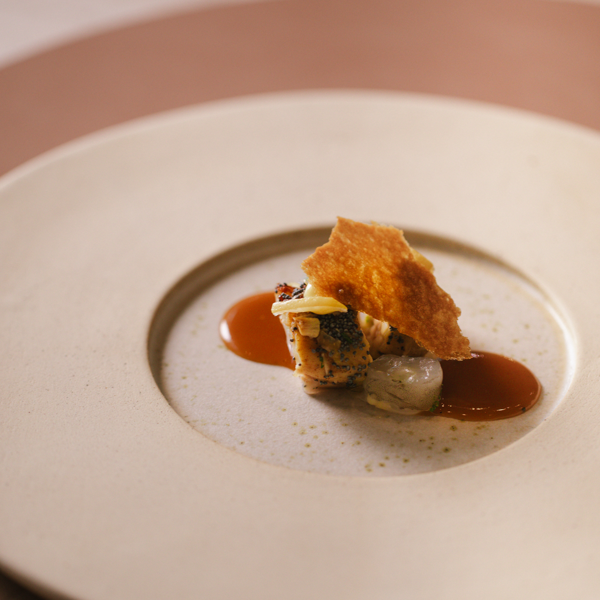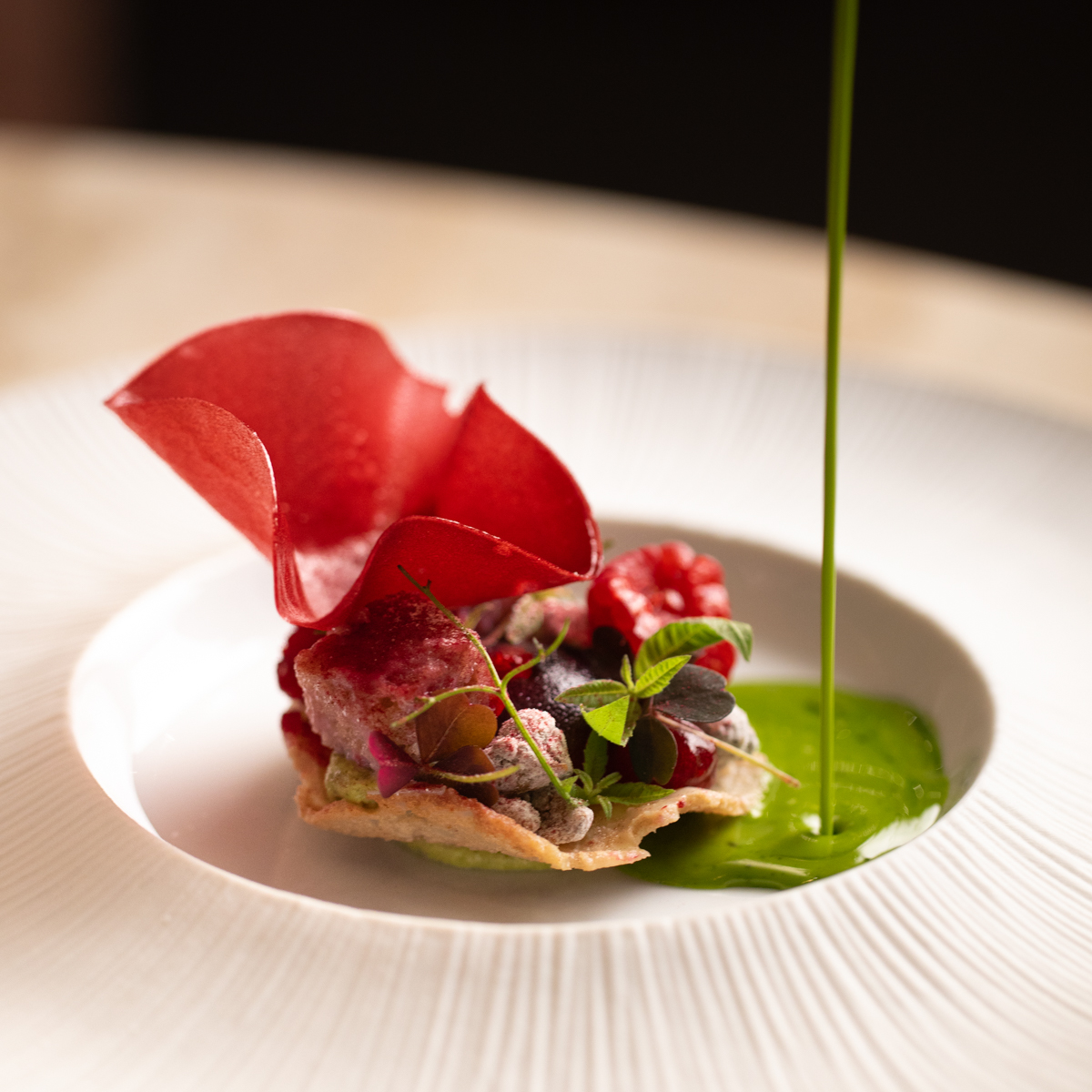 Die Leidenschaft für die exotisch-andersartigen Aromen der Küche seines Geburtslandes schmeckt man in jeder Komposition von Jens Madsen und seinem zehn-köpfigen Team. Die Liebe zum Detail erkennt man an Aufmerksamkeiten wie auf Büttenpapier gedruckten Erläuterungen zu dem jeweiligen Highlight-Produkt eines Ganges, die vor einem auf dem Tisch platziert werden.